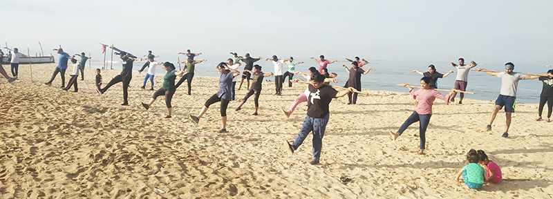 ಮಂಗಳೂರು, ನ.1: ನಗರದ ಮೇರಿಹಿಲ್ನ ಜೋಗರ್ಸ್ ಫ್ರೆಂಡ್ಸ್ ಸದಸ್ಯರಿಂದ ಕನ್ನಡ ರಾಜ್ಯೋತ್ಸವದ ಅಂಗವಾಗಿ ತಣ್ಣೀರುಬಾವಿ ಕಡಲ ಕಿನಾರೆಯಲ್ಲಿ ಲಾಠಿ ಯೋಗ ಸೋಮವಾರ ಬೆಳಗ್ಗೆ ನಡೆಯಿತು.