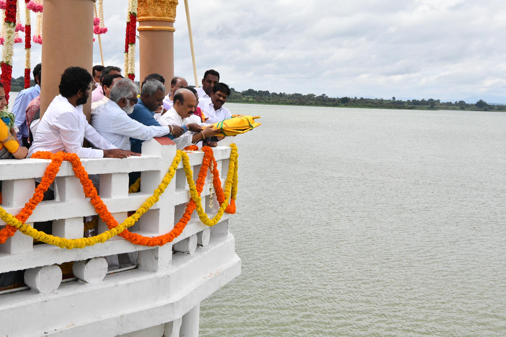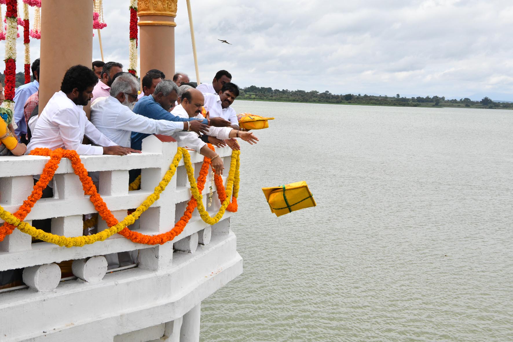 ಮಂಡ್ಯ: ತುಂಬಿತುಳುಕುತ್ತಿರುವ ಕೃಷ್ಣರಾಜಸಾಗರ (ಕೆಆರ್ ಎಸ್) ಜಲಾಶಯಕ್ಕೆ ಮುಖ್ಯಮಂತ್ರಿ ಬಸವರಾಜ ಎಸ್.ಬೊಮ್ಮಾಯಿ ಅವರು ಮಂಗಳವಾರ ಬಾಗಿನ ಅರ್ಪಿಸಿ, ಕಾವೇರಿ ಮಾತೆಗೆ ಪೂಜೆ ಸಲ್ಲಿಸಿದರು