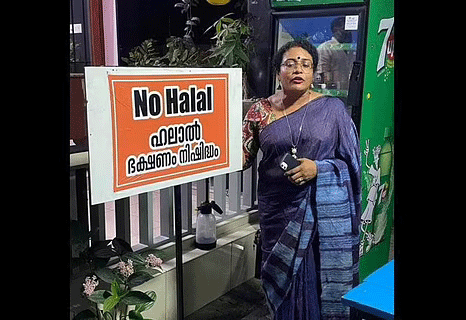 ಕೊಚ್ಚಿ: ತನ್ನ ಹೋಟೆಲ್ ಎದುರುಗಡೆ 'ನೋ ಹಲಾಲ್' ಬೋರ್ಡ್ ಅಳವಡಿಸಿದ್ದಕ್ಕೆ ತನ್ನ ಮೇಲೆ ಹಲ್ಲೆ ನಡೆಸಲಾಗಿದೆ ಎಂದು ಸುಳ್ಳು ಆರೋಪ ಹೊರಿಸಿದ್ದ ತುಷಾರ ನಂದು ಅಲಿಯಾಸ್ ತುಷಾರ ಅಜಿತ್ ಮತ್ತಾಕೆಯ ಸಹವರ್ತಿಗಳನ್ನು ಇಬ್ಬರು ವ್ಯಕ್ತಿಗಳ ಮೇಲೆ ಹಲ್ಲೆಗೈದ ಆರೋಪದ ಮೇಲೆ ಬಂಧಿಸಲಾಗಿದೆ. ಹೋಟೆಲಿನ ಮಾಲಕತ್ವದ ಕುರಿತಂತೆ ಎದ್ದ ವಿವಾದವೇ ಈ ಹಲ್ಲೆಗೆ ಕಾರಣವೆನ್ನಲಾಗಿದೆ ಎಂದು newindianexpress.com ವರದಿ ಮಾಡಿದೆ.