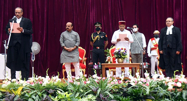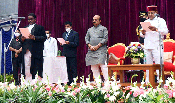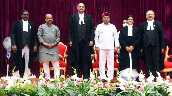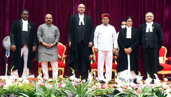 ಬೆಳಗ್ಗೆ ರಾಜಭವನದ ಗಾಜಿನಮನೆಯಲ್ಲಿ ನಡೆದ ಸಮಾರಂಭದಲ್ಲಿ ರಾಜ್ಯಪಾಲ ಥಾವರ ಚಂದ್ ಗೆಹ್ಲೋಟ್ ನೂತನ ನ್ಯಾಯಮೂರ್ತಿಗಳಿಗೆ ಪ್ರಮಾಣ ವಚನ ಬೋಧಿಸಿದರು.