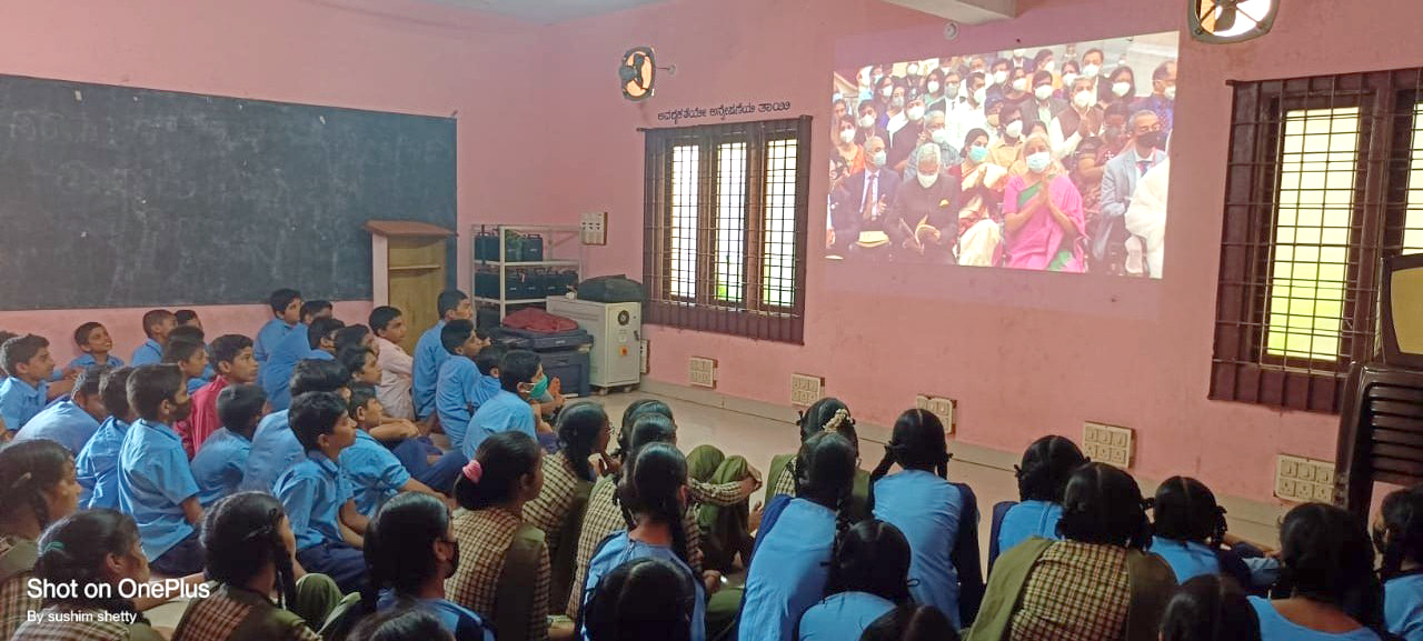 ಹಾಜಬ್ಬರಿಗೆ ಪದ್ಮಶ್ರೀ ಪ್ರದಾನ: ಸಂಭ್ರಮದ ಕ್ಷಣವನ್ನು ಕಣ್ತುಂಬಿಕೊಂಡ ಹಾಜಬ್ಬರ ಶಾಲಾ ವಿದ್ಯಾರ್ಥಿಗಳು