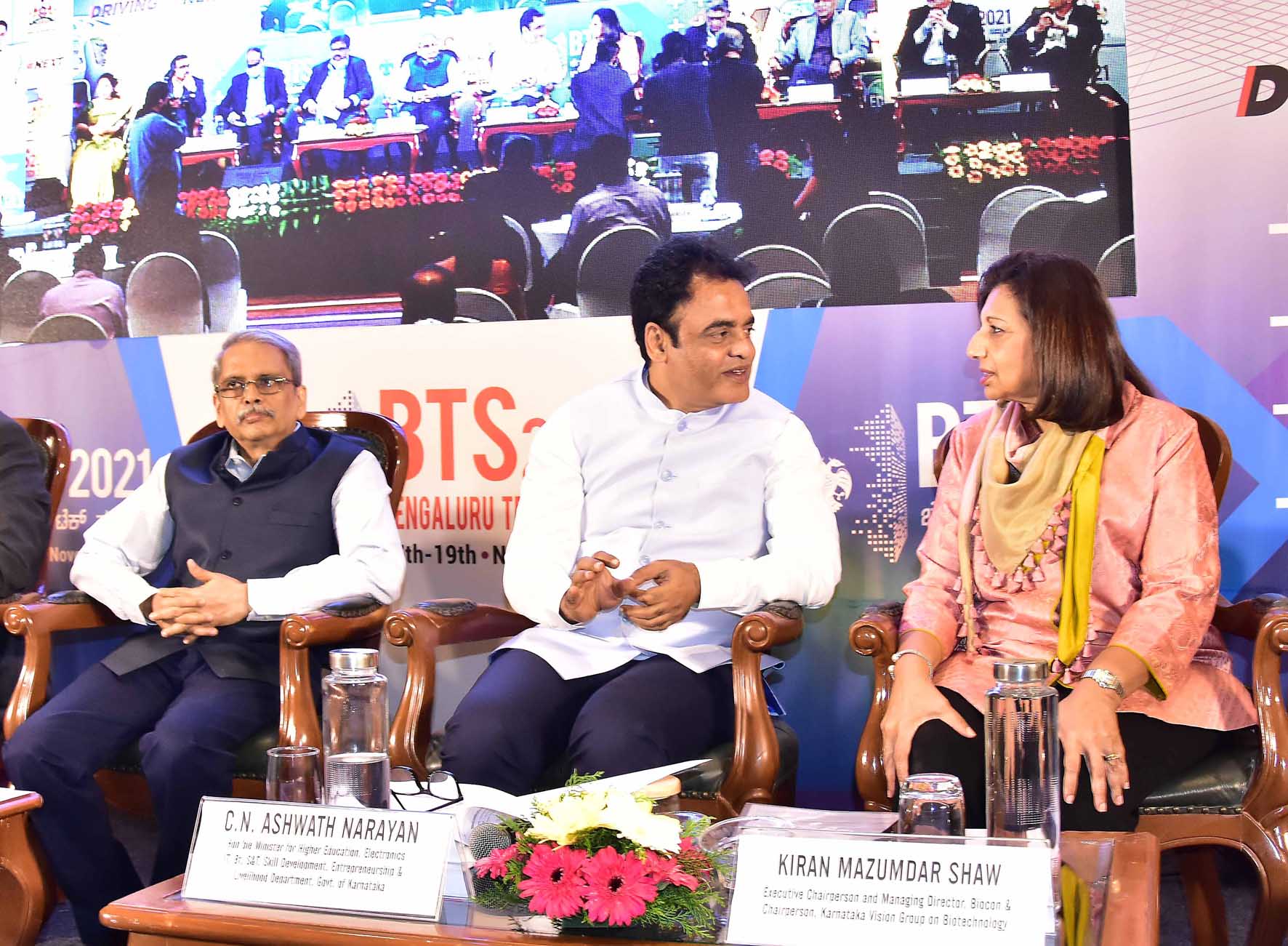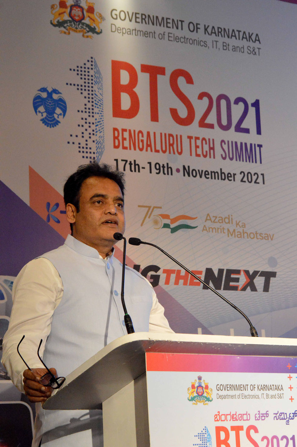 ಉಳಿದ ರಾಜ್ಯಗಳೊಂದಿಗೆ ಸಹಯೋಗಕ್ಕೂ ಒತ್ತು: ಬಿಟಿಎಸ್-2021 ಬರೀ ವಿದೇಶಗಳಷ್ಟೆ ಅಲ್ಲದೆ, ನಮ್ಮದೆ ದೇಶದ ಉಳಿದ ರಾಜ್ಯಗಳೊಂದಿಗೂ ಸಹಯೋಗವನ್ನು ಹೊಂದುವ ಆಶಯ ಇಟ್ಟುಕೊಂಡಿದೆ. ಈ ಉದ್ದೇಶದಿಂದ `ಇಂಡಿಯಾ ಇನ್ನೋವೇಶನ್ ಅಲೈಯನ್ಸ್’ ಎನ್ನುವ ಹೊಸ ಉಪಕ್ರಮವನ್ನು ಆರಂಭಿಸುತ್ತಿದ್ದು, ಇದರ ಭಾಗವಾಗಿ ಪುಣೆ, ಹೈದರಾಬಾದ್, ದೆಹಲಿ, ಮುಂಬೈ, ಕಾನ್ಪುರ, ಭುವನೇಶ್ವರ ಮತ್ತು ಪಣಜಿಯಲ್ಲಿರುವ ಅನುಶೋಧನಾ ಕೇಂದ್ರಗಳು ಪಾಲ್ಗೊಳ್ಳುತ್ತಿವೆ ಎಂದು ಅವರು ಹೇಳಿದರು. ಅಲ್ಲದೆ, ತಂತ್ರಜ್ಞಾನ ಕ್ಷೇತ್ರದಲ್ಲಿ ಬೆಂಗಳೂರಿನ ಮುಂಚೂಣಿಯನ್ನು ಮುಂದುವರಿಸಿಕೊಂಡು ಹೋಗುವ ಗುರಿಯೊಂದಿಗೆ `ಬೆಂಗಳೂರು ನೆಕ್ಸ್ಟ್’ ನಾಯಕತ್ವ ಗೋಷ್ಠಿ ಹಮ್ಮಿಕೊಳ್ಳಲಾಗಿದೆ. ಜೊತೆಗೆ, ಯೂನಿಕಾರ್ನ್ ಸ್ಥಾನಮಾನ ಹೊಂದಿರುವ 22 ಕಂಪೆನಿಗಳನ್ನು ಪುರಸ್ಕರಿಸಲಾಗುವುದು ಎಂದರು.