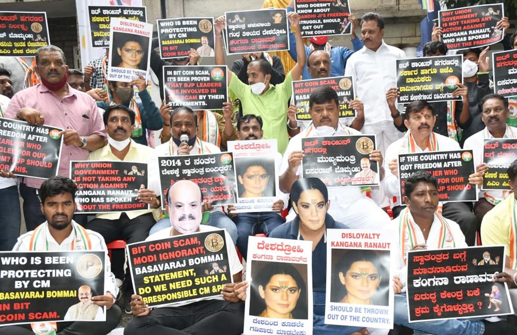 ಕಾಂಗ್ರೆಸ್ ಪಕ್ಷ ಬಹಿರಂಗವಾಗಿ ಕೇಂದ್ರ ಹಾಗೂ ರಾಜ್ಯ ಸರಕಾರಕ್ಕೆ ಸವಾಲೆಸೆದು ಬಿಟ್ ಕಾಯಿನ್ ಹಗರಣವನ್ನು ಸರ್ವೋಚ್ಚ ನ್ಯಾಯಲಯದ ನ್ಯಾಯಮೂರ್ತಿಗಳಿಂದ ತನಿಖೆಗೆ ವಹಿಸಿ ಎಂದು ಕಾಂಗ್ರೆಸ್ ಕಾರ್ಯಕರ್ತರು ಒತ್ತಾಯಿಸಿದರು.