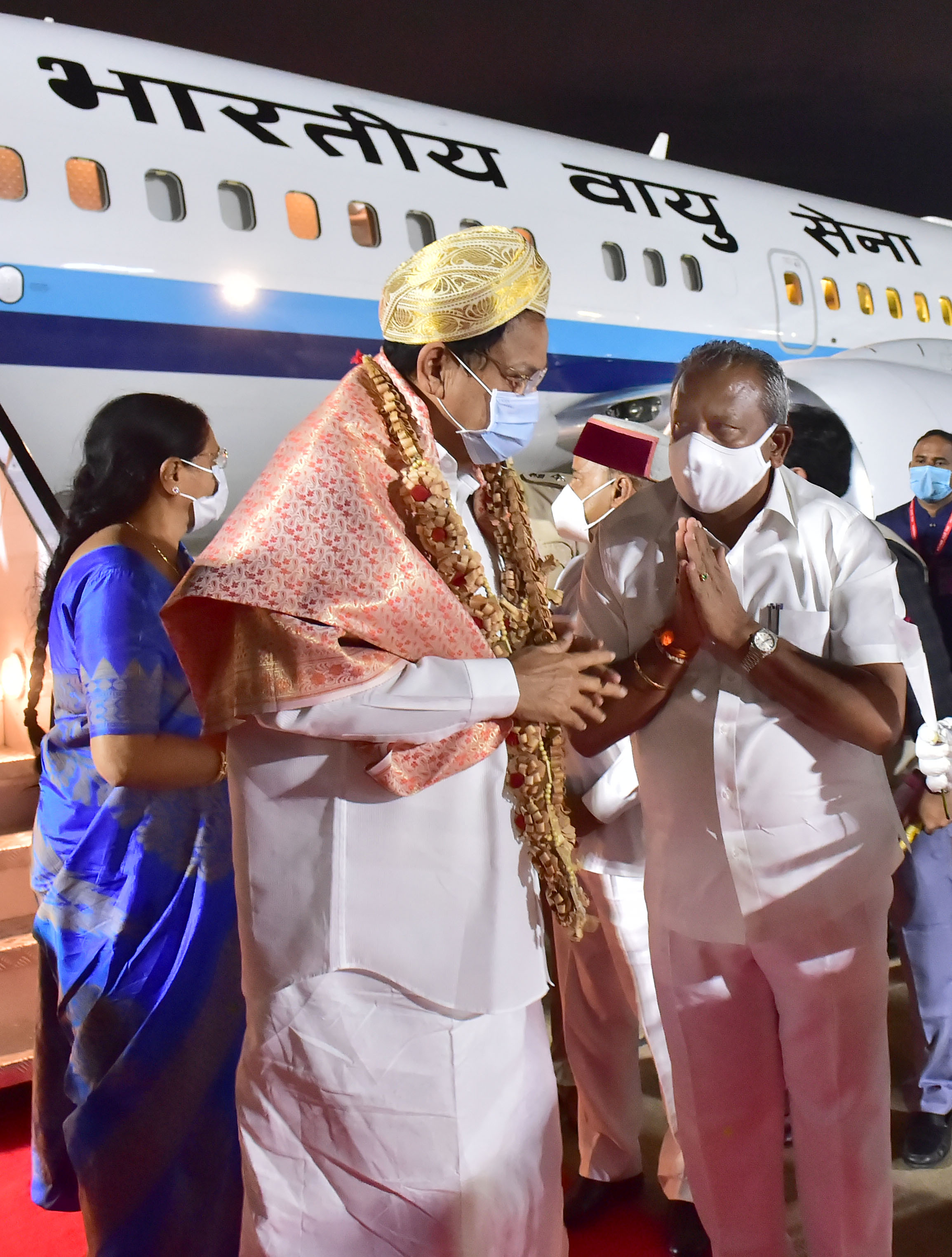 ರವಿವಾರ ಸಂಜೆ 6.25ರ ಸುಮಾರಿಗೆ ಬೆಂಗಳೂರಿನ ಎಚ್.ಎ.ಎಲ್. ವಿಮಾನ ನಿಲ್ದಾಣಕ್ಕೆ ಬಂದಿಳಿದ ಉಪರಾಷ್ಟ್ರಪತಿ ವೆಂಕಯ್ಯ ನಾಯ್ಡು ಅವರನ್ನು ರಾಜ್ಯಪಾಲ ಥಾವರ್ ಚಂದ್ ಗೆಹ್ಲೋಟ್, ನಗರಾಭಿವೃದ್ಧಿ ಸಚಿವ ಭೈರತಿ ಬಸವರಾಜ್, ರಾಜ್ಯ ಪೊಲೀಸ್ ಮಹಾನಿರ್ದೇಶಕ ಪ್ರವೀಣ್ ಸೂದ್, ಬೆಂಗಳೂರು ನಗರ ಪೊಲೀಸ್ ಆಯುಕ್ತ ಕಮಲ್ ಪಂಥ್, ಬೆಂಗಳೂರು ನಗರ ಜಿಲ್ಲಾಧಿಕಾರಿ ಜೆ.ಮಂಜುನಾಥ್ ಅವರು ಆತ್ಮೀಯವಾಗಿ ಬರಮಾಡಿಕೊಂಡರು.
