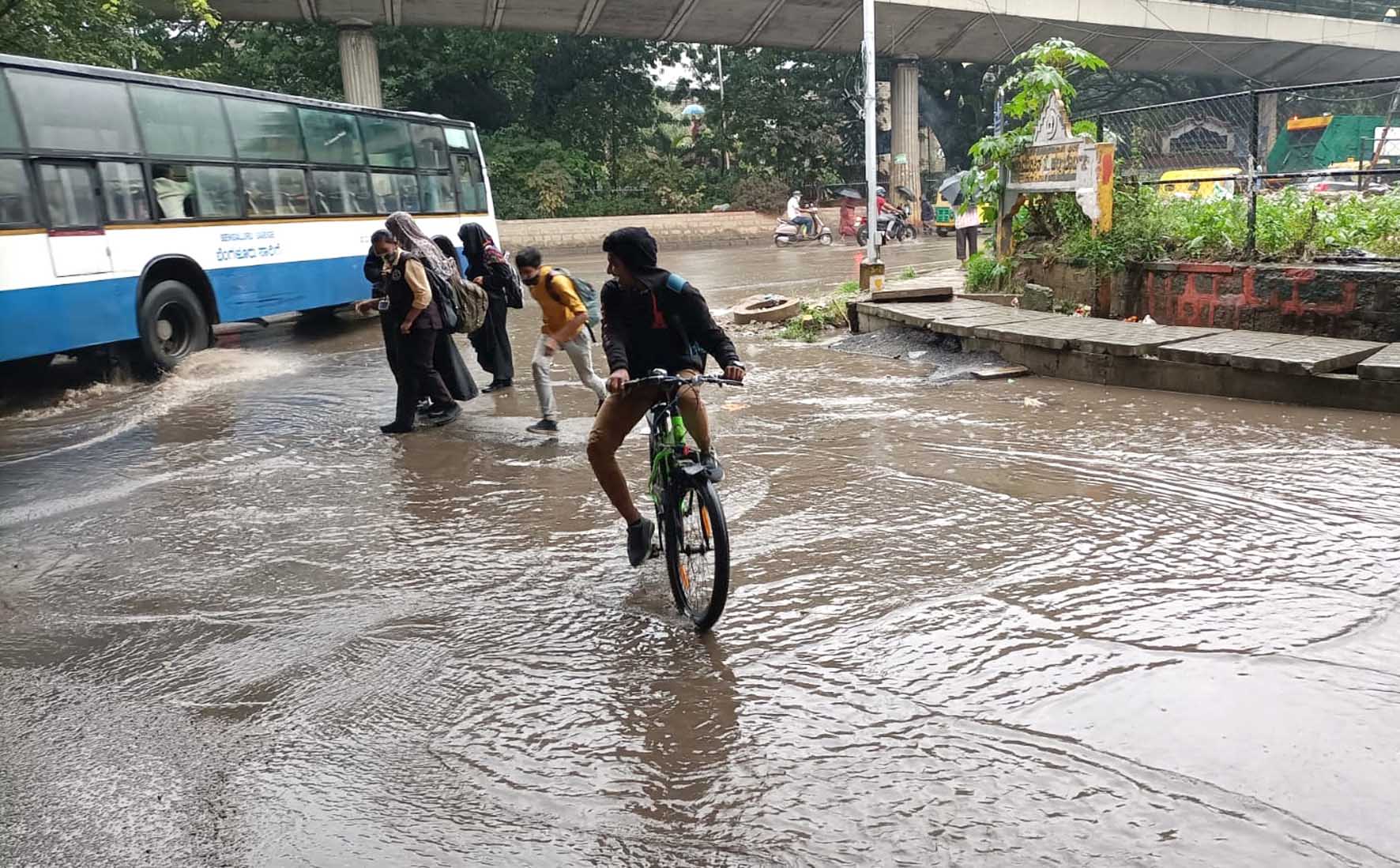 ಮತ್ತೊಂದೆಡೆ ರಸ್ತೆಯಲ್ಲಿ ನೀರು ನಿಂತು ವಾಹನ ಸವಾರರು ಪರದಾಡುವಂತಾಗಿದ್ದು, ವಾರದಿಂದ ನಿರಂತರವಾಗಿ ಸುರಿಯುತ್ತಿರುವ ಮಳೆಯಿಂದ ಸಿಲಿಕಾನ್ ಸಿಟಿ ಮಂದಿ ಹೈರಾಣಾಗಿದ್ದಾರೆ.