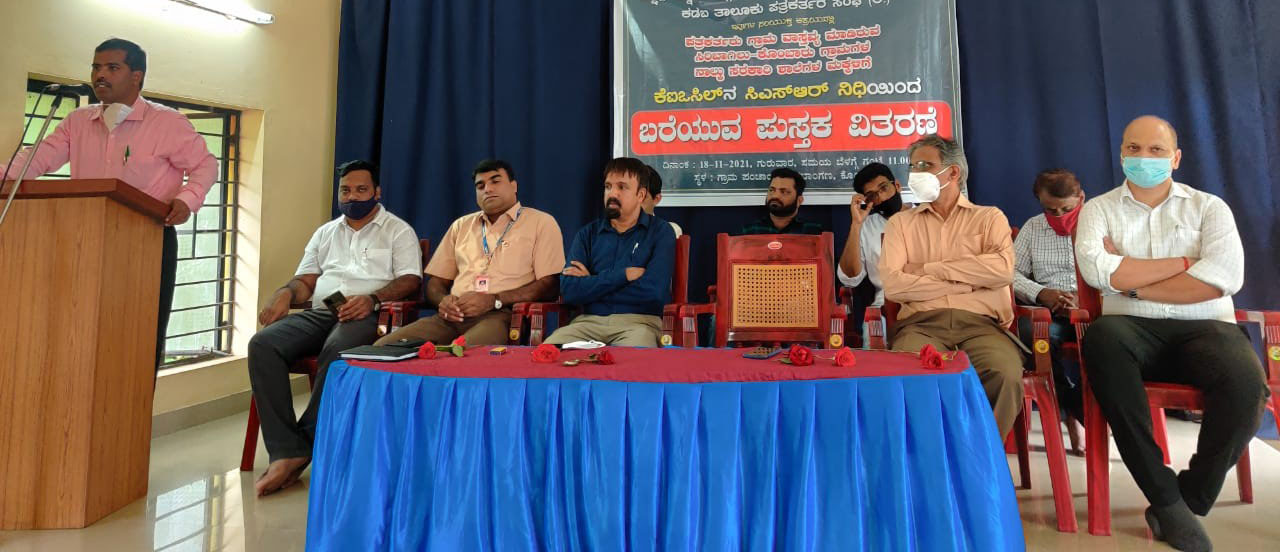 ದ.ಕ.ಜಿಲ್ಲಾ ಕಾರ್ಯನಿರತ ಪತ್ರಕರ್ತರ ಸಂಘ ಮತ್ತು ಕಡಬ ತಾಲೂಕು ಪತ್ರಕರ್ತರ ಸಂಘದ ಆಶ್ರಯದಲ್ಲಿ ಕೊಂಬಾರು ಗ್ರಾಮ ಪಂಚಾಯತ್ ಸಭಾಂಗಣದಲ್ಲಿಂದು ಪತ್ರಕರ್ತರು ಗ್ರಾಮ ವಾಸ್ತವ್ಯ ಮಾಡಿರುವ ಸಿರಿಬಾಗಿಲು-ಕೊಂಬಾರು ಗ್ರಾಮಗಳ ವ್ಯಾಪ್ತಿಗೊಳಪಟ್ಟ ನಾಲ್ಕು ಶಾಲೆಗಳ ಮಕ್ಕಳಿಗೆ ಕೆಐಓಸಿಲ್ ಸಿಎಸ್ ಆರ್ ನಿಧಿಯ ಮೂಲಕ ಒದಗಿಸಲಾದ ಬರೆಯುವ ಪುಸ್ತಕಗಳ ವಿತರಣೆ ಮಾಡಿ ಮಾತನಾಡುತ್ತಿದ್ದರು.