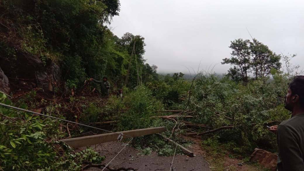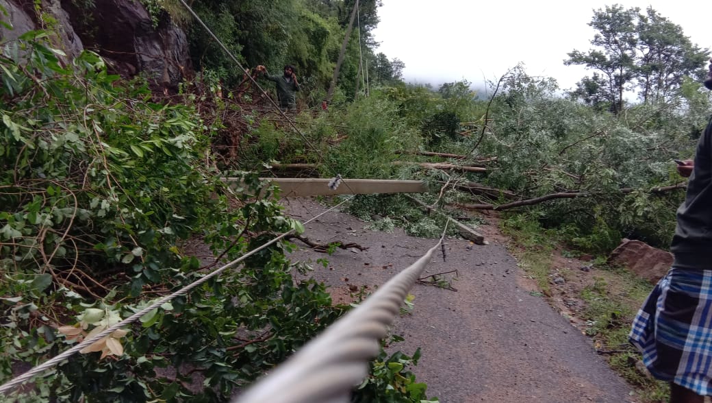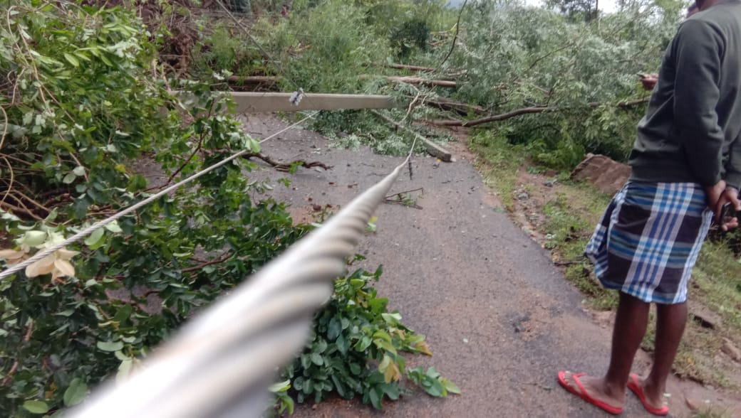 ಪೊನ್ನಾಚಿಯಲ್ಲಿ ರಸ್ತೆಗುರುಳಿದ ವಿದ್ಯುತ್ ಕಂಬ, ಮರಗಳು