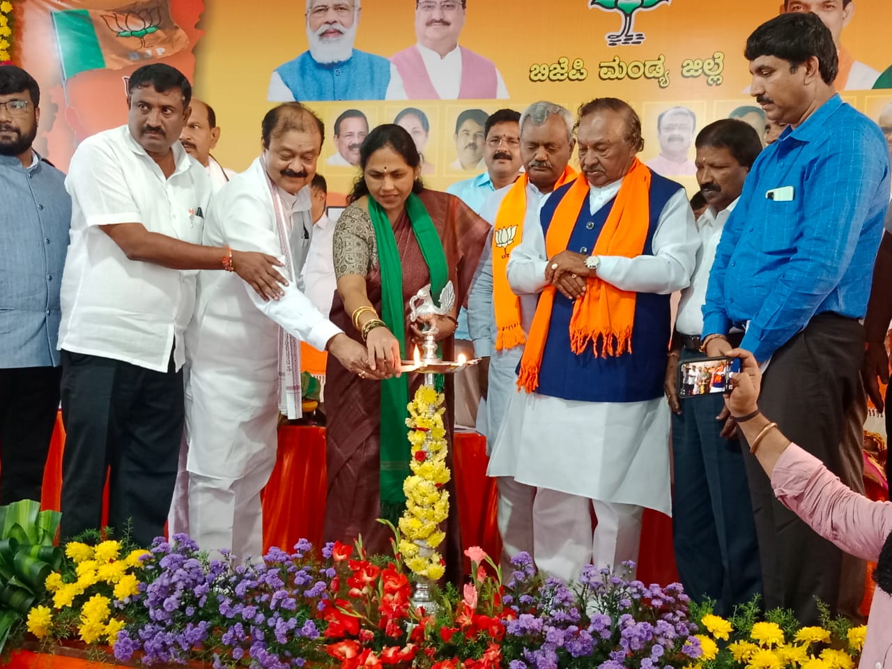 ಮಂಡ್ಯ, ನ.21: ವಿಧಾನ ಪರಿಷತ್ ಚುನಾವಣೆ ಹಾಗೂ ಪಕ್ಷ ಸಂಘಟನೆಯಲ್ಲಿ ರಾಜ್ಯ ಬಿಜೆಪಿ ವತಿಯಿಂದ ಹಮ್ಮಿಕೊಂಡಿರುವ ಜನಸ್ವರಾಜ್ ಸಮಾವೇಶ ಇಂದು ಮಂಡ್ಯ ಜಿಲ್ಲೆಯಲ್ಲಿ ಅದ್ದೂರಿಯಾಗಿ ನೆರವೇರಿತು.