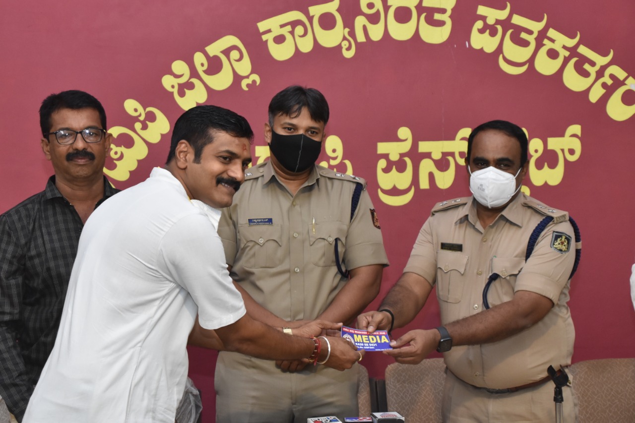 ಸ್ಟಿಕ್ಕರ್ ಬಿಡುಗಡೆಗೊಳಿಸಿದ ಜಿಲ್ಲಾ ಪೊಲೀಸ್ ಅಧೀಕ್ಷಕ ಎನ್.ವಿಷ್ಣುವರ್ಧನ್ ಮಾತನಾಡಿ, ಜಿಲ್ಲೆಯಲ್ಲಿ ನಡೆದ ಹಲವು ಪ್ರಕರಣಗಳನ್ನು ಬೇಧಿಸುವಲ್ಲಿ ಪತ್ರಕರ್ತರು ನೀಡಿದ ಮಾಹಿತಿಗಳು ಪೊಲೀಸ್ ಇಲಾಖೆಗೆ ಬಹಳಷ್ಟು ಸಹಕಾರಿ ಯಾಗಿದೆ. ಇದೇ ರೀತಿಯ ಪೊಲೀಸರಿಗೆ ಸಹಕಾರ ನೀಡುವ ಕಾರ್ಯ ಮುಂದುವರೆಯಬೇಕು. ಪೊಲೀಸರು ಮತ್ತು ಪತ್ರಕರ್ತರು ಒಟ್ಟಿಗೆ ಕೆಲಸ ಮಾಡುವ ಮೂಲಕ ಜಿಲ್ಲೆಗೆ ಒಳ್ಳೆಯ ಹೆಸರು ತರುವಂತಾಗಬೇಕು ಎಂದರು.