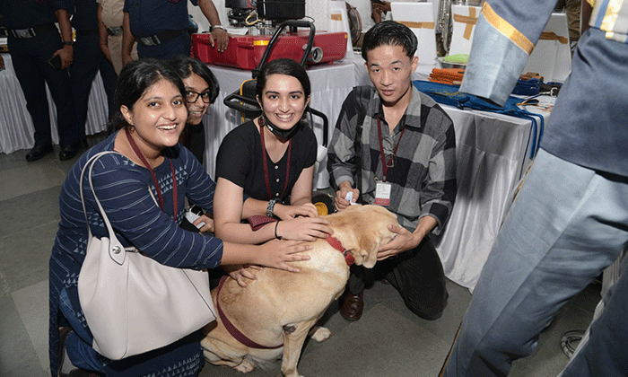 ಪೊಲೀಸ್ ಇಲಾಖೆಯ ವಿವಿಧ ವೈವಿಧ್ಯಗಳ ಪ್ರದರ್ಶನದಲ್ಲಿ ಶ್ವಾನದಳದ ಪ್ರಮುಖ ಆಕರ್ಷಣೆ ಡಿಟೆಕ್ವಿಟ್ ಗೀತಾಳಿಗೆ ಭಾರೀ ಡಿಮ್ಯಾಂಡ್! ಸುಂದರ ಧಿರಿಸಿನೊಂದಿಗೆ ಟೇಬಲ್ ಮೇಲೆ ಬಾಲ ಅಲ್ಲಾಡಿಸುತ್ತಾ ಆಸೀನಳಾಗಿದ್ದ ಗೀತಾಳ ಮೈ ಮುಟ್ಟವ ಜತೆಗೆ ಕಾಲೇಜು ವಿದ್ಯಾರ್ಥಿಗಳು ಸೆಲ್ಫಿಯನ್ನೂ ಕ್ಲಿಕ್ಕಿಸಿದರು.
