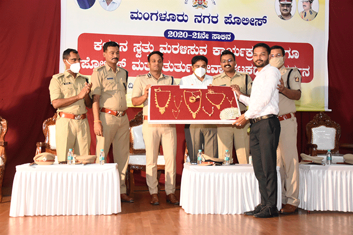 ಕಾರ್ಯಕ್ರಮದ ರುವಾರಿ ಹಾಗೂ ಅಧ್ಯಕ್ಷತೆ ವಹಿಸಿದ್ದ ಪೊಲೀಸ್ ಆಯುಕ್ತ ಎನ್.ಶಶಿಕುಮಾರ್ ಪ್ರಾಸ್ತಾವಿಕವಾಗಿ ಮಾತನಾಡಿ, 2020-21ನೇ ಸಾಲಿನಲ್ಲಿ ನಡೆದ ವಿವಿಧ ಪ್ರಕರಣಗಳಲ್ಲಿ 100ಕ್ಕೂ ಅಧಿಕ ದ್ವಿಚಕ್ರ, 20ಕ್ಕೂ ಅಧಿಕ ಚತುಷ್ಚಕ್ರ, 20 ಕೆಜಿ ಬೆಳ್ಳಿ, ಚಿನ್ನಾಭರಣಗಳು, 35 ಲಕ್ಷ ರೂ.ಗಳಿಗೂ ಅಧಿ ಹಣ ಸೇರಿದಂತೆ 2.90 ಕೋಟಿ ರೂ. ಮೌಲ್ಯದ ಸೊತ್ತುಗಳನ್ನು ವಶಪಡಿಸಿಕೊಳ್ಳಲಾಗಿದೆ ಎಂದರು.ಕಳವು ಪ್ರಕರಣಗಳಲ್ಲಿ 212 ಕೇಸ್ ಪತ್ತೆ ಮಾಡಲಾಗಿದೆ. 2021ರಲ್ಲಿ ಇಲ್ಲಿವರೆಗೆ 277 ಕಳವು ಪ್ರಕರಣಗಳಲ್ಲಿ 137 ಕೇಸ್ ಪತ್ತೆ ಹಚ್ಚಲಾಗಿದೆ. ಮಂಗಳೂರು ಸುತ್ತಮುತ್ತ ಜಿಲ್ಲೆಗಳ 100ಕ್ಕೂ ಅಧಿಕ ಪ್ರಕರಣ ಇದರಲ್ಲಿ ಸೇರಿದೆ. ಕಳವು ಪ್ರಕರಣಗಳಲ್ಲಿ 20 ಚತುಷ್ಪಕ್ರ ವಾಹನ, 105 ದ್ವಿಚಕ್ರ ಹಾಗೂ 135 ಮೊಬೈಲ್ ಕಳ್ಳತನ ನಡೆದಿದೆ. ಅಲ್ಲದೆ 20 ಕೆಜಿ ಬೆಳ್ಳಿ, 3 ಕೆಜಿ ಚಿನ್ನ ಸೇರಿ ಕಳವಾದ ಸೊತ್ತಿನ ಮೌಲ್ಯ ಒಟ್ಟು 2.90 ಕೋಟಿ ರು. ಆಗಿದೆ. ಕಳ್ಳತನಕ್ಕೆ ಸಂಬಂಧಿಸಿ 726 ಆರೋಪಿಗಳನ್ನು ಬಂಧಿಸಲಾಗಿದೆ ಎಂದರು.
