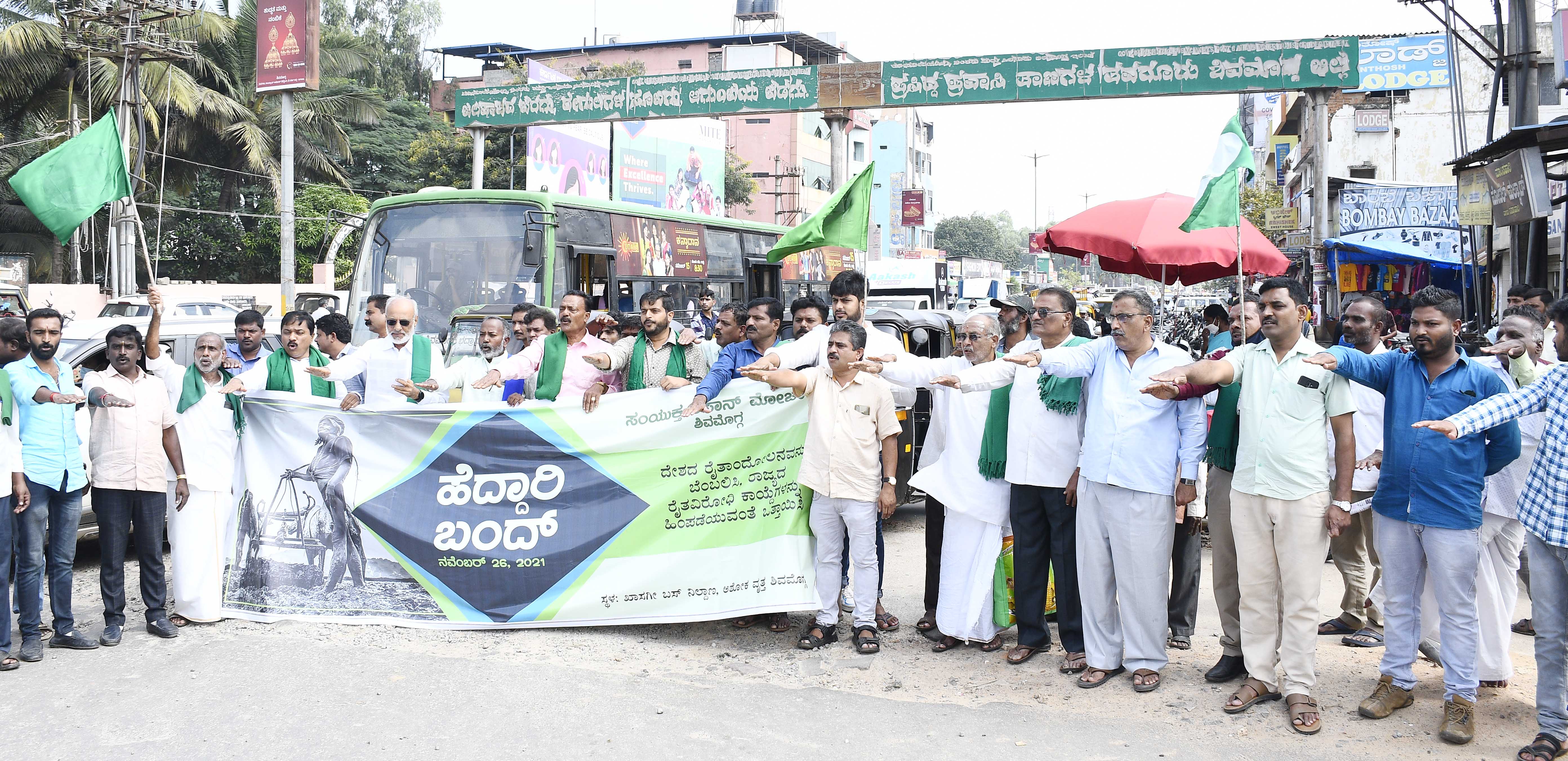 ಸಂಯುಕ್ತ ಹೋರಾಟ-ಕರ್ನಾಟಕದ ನೇತೃತ್ವದಲ್ಲಿ ದೆಹಲಿಯಲ್ಲಿ ರೈತರು ನಡೆಸುತ್ತಿರುವ ಪ್ರತಿಭಟನಗೆ ಒಂದು ವರ್ಷ ತುಂಬಿದ ಹಿನ್ನೆಲೆಯಲ್ಲಿ ರೈತಪರ, ಕಾರ್ಮಿಕ ಹಾಗು ದಲಿತಪರ ಸಂಘಟನೆಯ ಕಾರ್ಯಕರ್ತರು ಸೇರಿ ಎನ್.ಆರ್ ವೃತ್ತದವರಗೆ ಮೆರವಣಿಗೆ ಬಂದು ಎನ್.ಆರ್ ವೃತ್ತದಲ್ಲಿ ಅರ್ಧ ಗಂಟೆ ವಾಹನಗಳ ಸಂಚಾರ ತಡೆದು ಕೇಂದ್ರ ಹಾಗು ರಾಜ್ಯ ಸರ್ಕಾರದ ವಿರುದ್ಧ ದಿಕ್ಕಾರದ ಘೋಷಣೆ ಕೂಗಿ ಪ್ರತಿಭಟನೆ ನಡೆಸಿದರು.