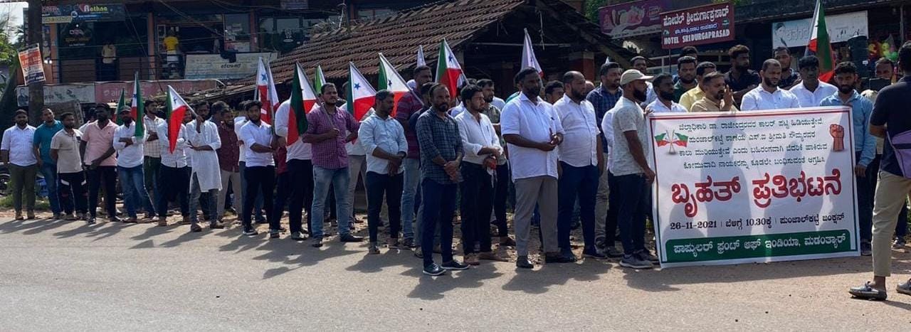 ಬೆಳ್ತಂಗಡಿ; ಹಿಂದೂ ಜಾಗರಣ ವೇದಿಕೆಯ ಮುಖಂಡ ರಾಧಾಕೃಷ್ಣ ಅಡ್ಯಂತಾಯ ಪತ್ರಿಕಾಗೋಷ್ಠಿಯೊಂದರಲ್ಲಿ ಪುಂಜಾಲಕಟ್ಟೆ ಠಾಣಾ ಎಸ್ಸೈ ಸೌಮ್ಯ ಅವರ ಕಾಲು ಮುರಿಯುತ್ತೇವೆ ಮತ್ತು ಕಾರಿಂಜದಲ್ಲಿ ಪ್ರಚೋಧನಾಕಾರಿ ಭಾಷಣಕಾರ ಹಿಂದೂ ಜಾಗರಣ ವೇದಿಕೆಯ ಜಗದೀಶ್ ಕಾರಂತ ಜಿಲ್ಲಾಧಿಕಾರಿಯ ಕೊರಳಪಟ್ಟಿ ಹಿಡಿಯುತ್ತೇವೆ ಎಂಬ ಬೆದರಿಕೆ ಹೇಳಿಕೆಗಳ ವಿರುದ್ಧ ಪುಂಜಾಲಕಟ್ಟೆಯಲ್ಲಿ ಪಾಪ್ಯುಲರ್ ಫ್ರಂಟ್ ಆಫ್ ಇಂಡಿಯಾ ಮಡಂತ್ಯಾರು ಡಿವಿಷನ್ ವತಿಯಿಂದ ಪ್ರತಿಭಟನೆ ನಡೆಯಿತು