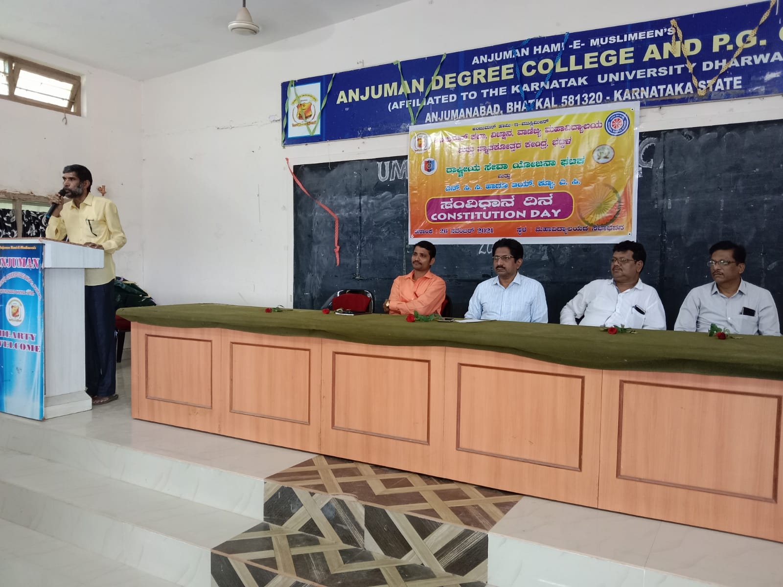 ಅಂಜುಮನ್ ಪದವಿ ಕಾಲೇಜು ಮತ್ತು ಸ್ನಾತಕೋತ್ತರ ಕೇಂದ್ರದಲ್ಲಿ ಕಾಲೇಜಿನ ರಾಷ್ಟ್ರೀಯ ಸೇವಾ ಯೋಜನಾ ಘಟಕವು ಹಮ್ಮಿಕೊಂಡ ‘ಸಂವಿಧಾನ ದಿನಾಚರಣೆ’ ಕಾರ್ಯಕ್ರಮದ ಮುಖ್ಯ ಅತಿಥಿ ಮತ್ತು ಪ್ರಧಾನ ಭಾಷಣಕಾರರಾಗಿ ಆಗಮಿಸಿದ ರವಿ ಚಿತ್ರಾಪುರ, ಸಂವಿಧಾನ ರಚನೆಯ ಹಿನ್ನೆಲೆ, ಸಂವಿಧಾನ ರಚನಾಕಾರರು ಜಗತ್ತಿನಲ್ಲಿಯೇ ಉತ್ತಮ ಸಂವಿಧಾನವನ್ನು ರಚಿಸುವಲ್ಲಿ ಪಟ್ಟ ಪರಿಶ್ರಮ, ಸಂವಿಧಾನದ ಯಾವ ಯಾವ ಭಾಗದಲ್ಲಿ ಯಾವ ಯಾವ ವಿಚಾರಗಳನ್ನು ಪ್ರಸ್ತಾಪಿಸಲಾಗಿದೆ, ಜಗತ್ತಿನ ಬೇರೆ ಬೇರೆ ದೇಶಗಳ ಸಂವಿಧಾನದಿಂದ ಯಾವ ಯಾವ ಅಂಶಗಳನ್ನು ಎತ್ತಿಕೊಳ್ಳಲಾಗಿದೆ ಇತ್ಯಾದಿ ವಿಚಾರಗಳನ್ನು ಎಳೆಯೆಳೆಯಾಗಿ ತಿಳಿಸಿಕೊಟ್ಟರು.