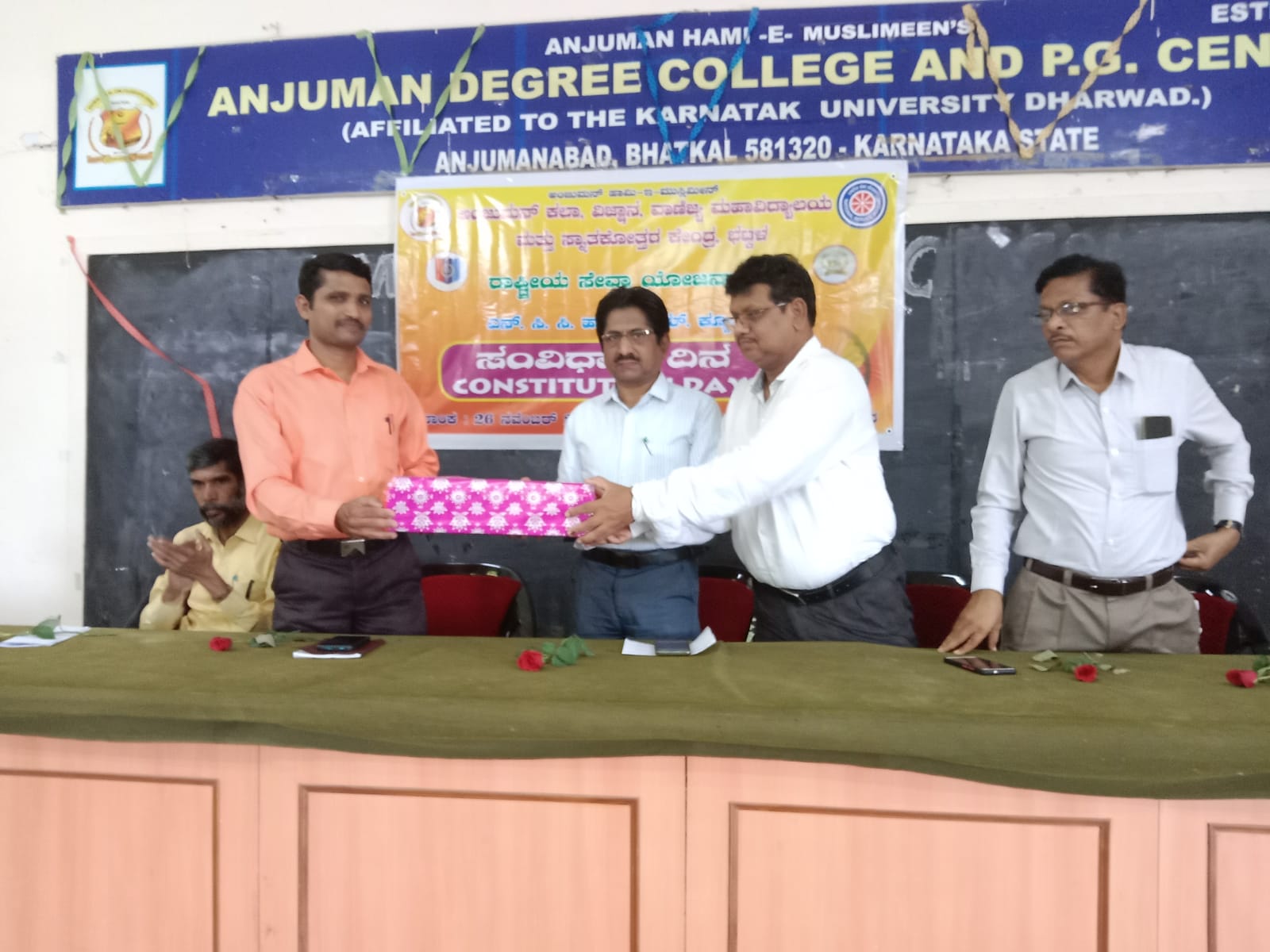 ಹಿರಿಯ ಪ್ರಾಧ್ಯಾಪಕರಾದ ಪ್ರೊ. ಎಸ್. ಎ. ಇಂಡಿಕರ್ ಮತ್ತು ಪ್ರೊ. ಬಿ. ಎಚ್. ನದಾಫ್ ವೇದಿಕೆಯ ಮೇಲೆ ಉಪಸ್ಥಿತರಿದ್ದರು. ಕುಮಾರಿ ನಯನಾ ಮೊಗೇರ ಮತ್ತು ದೀಪಾ ನಾಯ್ಕ ಕಾರ್ಯಕ್ರಮವನ್ನು ಅಚ್ಚುಕಟ್ಟಾಗಿ ನಿರ್ವಹಿಸಿದರು. ಕುಮಾರಿ ಲಾವಣ್ಯ ಸಂವಿಧಾನದ ಪೀಠಿಕೆಯನ್ನು ವಾಚಿಸಿದರು.
