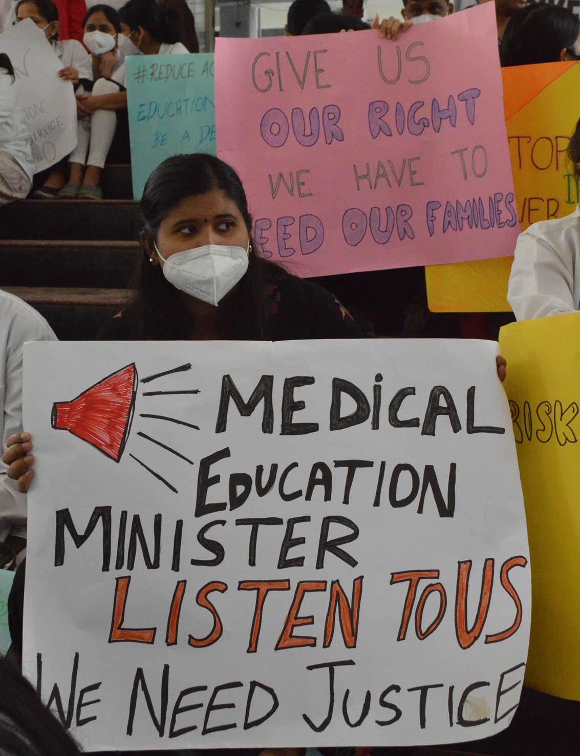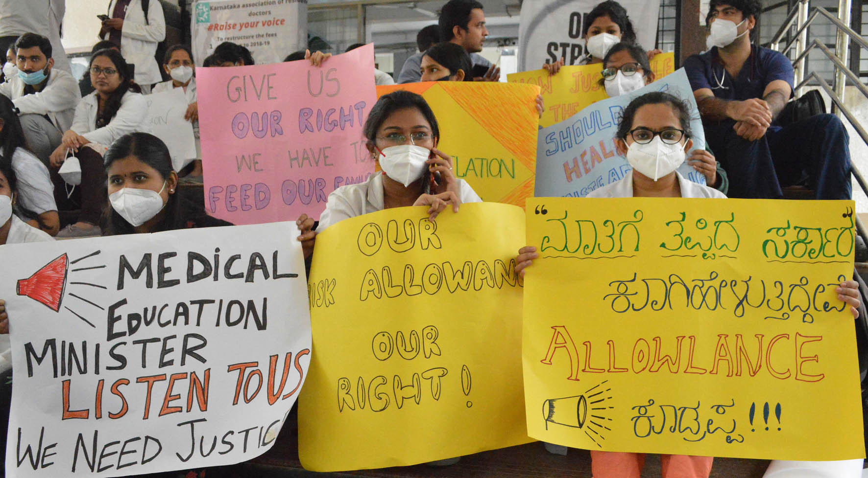 ರಾಜ್ಯ ಸರಕಾರವು ರಾಜ್ಯದ ಯುವ ವೈದ್ಯರ ಕಡೆಗೆ ನಿರ್ಲಕ್ಷ್ಯ ತೋರುತ್ತಿದೆ. ಕೋವಿಡ್ ಸಂದರ್ಭದಲ್ಲಿ ಅಧಿಕ ಒತ್ತಡ ಹೇರಿ ನಮ್ಮ ಸೇವೆಯನ್ನು ಬಳಕೆ ಮಾಡಿಕೊಳ್ಳಲಾಗಿದೆ. ಆದರೆ, ಇದೀಗ ನಿರ್ಲಕ್ಷ್ಯ ತೋರುತ್ತಿದೆ ಎಂದು ಸರಕಾರದ ವಿರುದ್ಧ ವೈದ್ಯರು ಅಸಮಾಧಾನ ವ್ಯಕ್ತಪಡಿಸಿದರು.