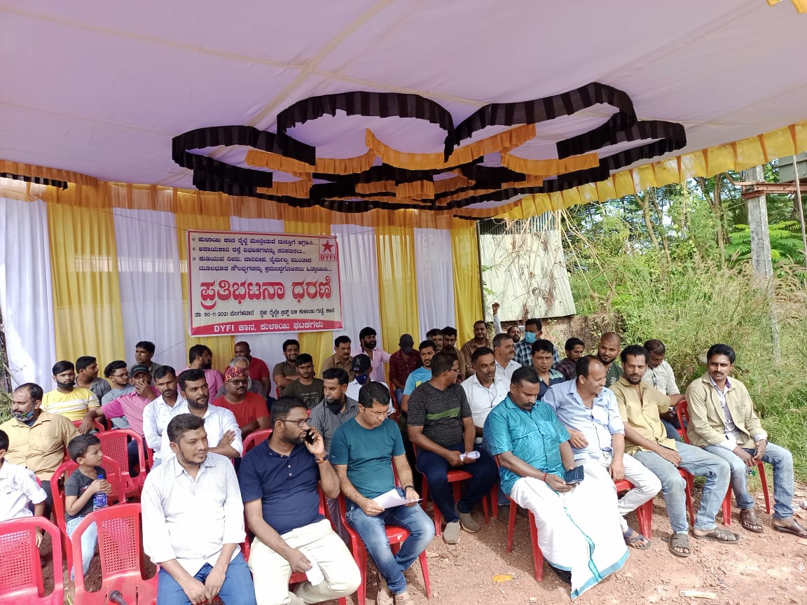 ಮಂಗಳೂರು, ನ.30: ಕುಳಾಯಿ, ಕಾನ ರಸ್ತೆಯಲ್ಲಿರುವ ರೈಲ್ವೆ ಮೇಲ್ಸೇತುವೆ ದುರಸ್ಥಿ, ಸುರತ್ಕಲ್, ಕಾನ, ಎಮ್ಆರ್ ಪಿಎಲ್ ರಸ್ತೆ ದುರಸ್ಥಿಗೆ ಒತ್ತಾಯಿಸಿ, ಜಲಸಿರಿ ಯೋಜನೆಯ ಕೊಳವೆ ಅಳವಡಿಸುವಿಕೆಯಲ್ಲಿ ಉಂಟಾಗಿರುವ ಅವ್ಯವಸ್ಥೆ ಮತ್ತಿತರ ಸಮಸ್ಯೆಗಳನ್ನು ಸರಿಪಡಿಸಲು ಆಗ್ರಹಿಸಿ ಡಿವೈಎಫ್ಐ ಕಾನ, ಕುಳಾಯಿ ಘಟಕದ ವತಿಯಿಂದ ಕುಳಾಯಿ ಗುಡ್ಡೆಯಲ್ಲಿ ಪ್ರತಿಭಟನಾ ಧರಣಿ ನಡೆಯಿತು.