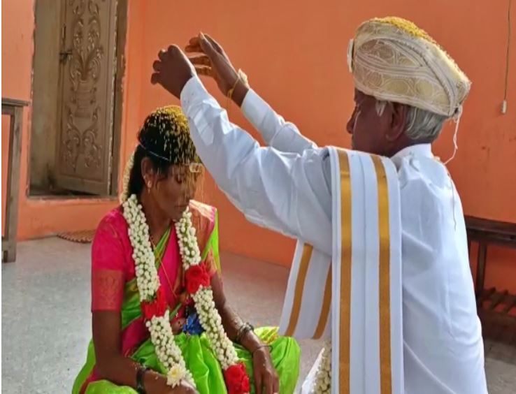 65 ವರ್ಷ ವಯಸ್ಸಿನ ಚಿಕ್ಕಣ್ಣ ಮತ್ತು ಜಯಮ್ಮ, ನವ ವಧು-ವರರಂತೆ ಹೊಸ ಬಟ್ಟೆ ಧರಿಸಿ ಹಣೆಗೆ ಬಾಸಿಂಗ ಧರಿಸಿ ಕಂಗೊಳಿಸಿದರು. ಮೈಸೂರು ಪೇಟ ತೊಟ್ಟ ಜಯಣ್ಣ, ತಮ್ಮ ಬಹುಕಾಲದ ಪ್ರೇಯಸಿ ಜಯಮ್ಮರಿಗೆ ಶಾಸ್ತ್ರೋಕ್ತವಾಗಿ ಮಾಂಗಲ್ಯ ಧಾರಣೆ ಮಾಡಿದರು.