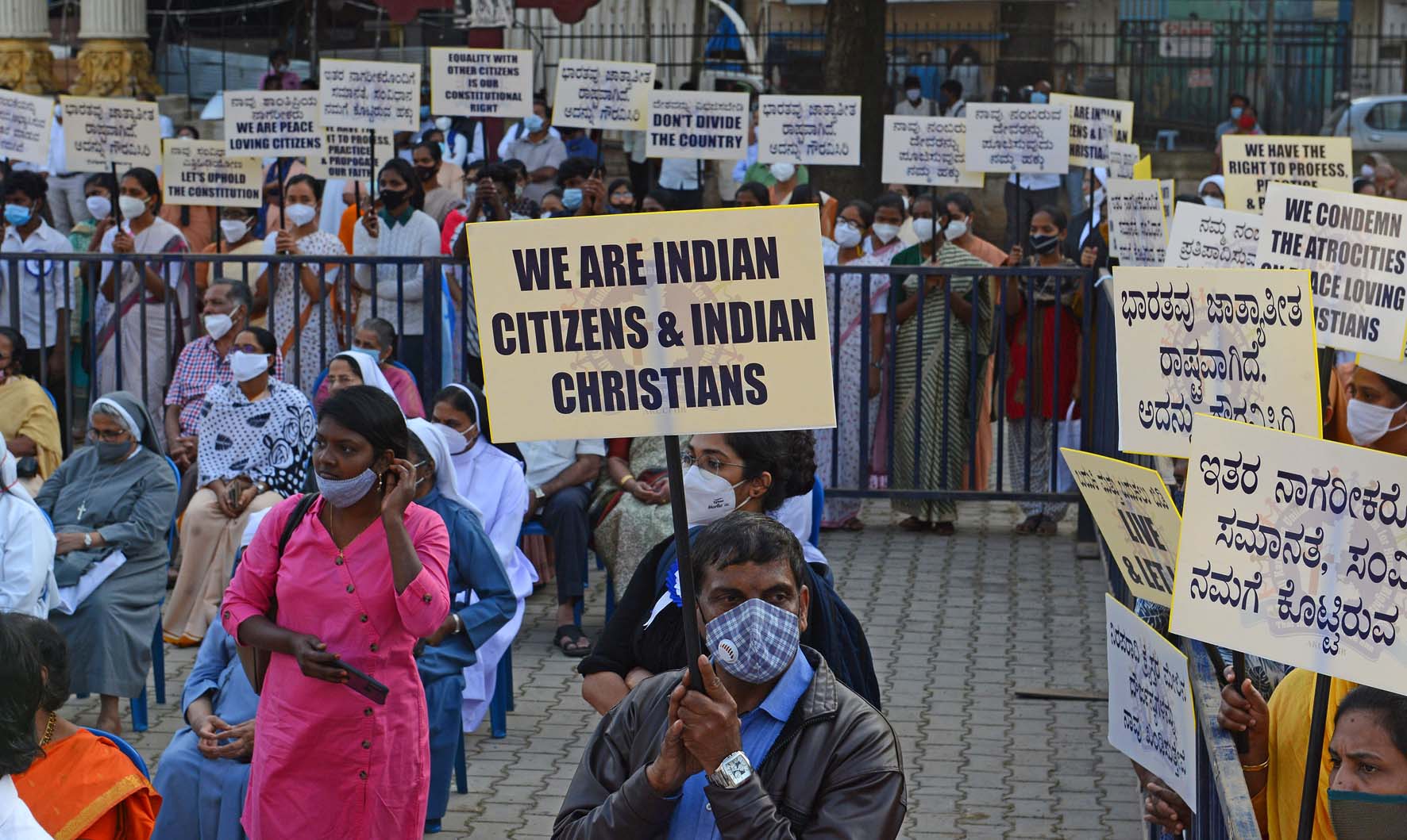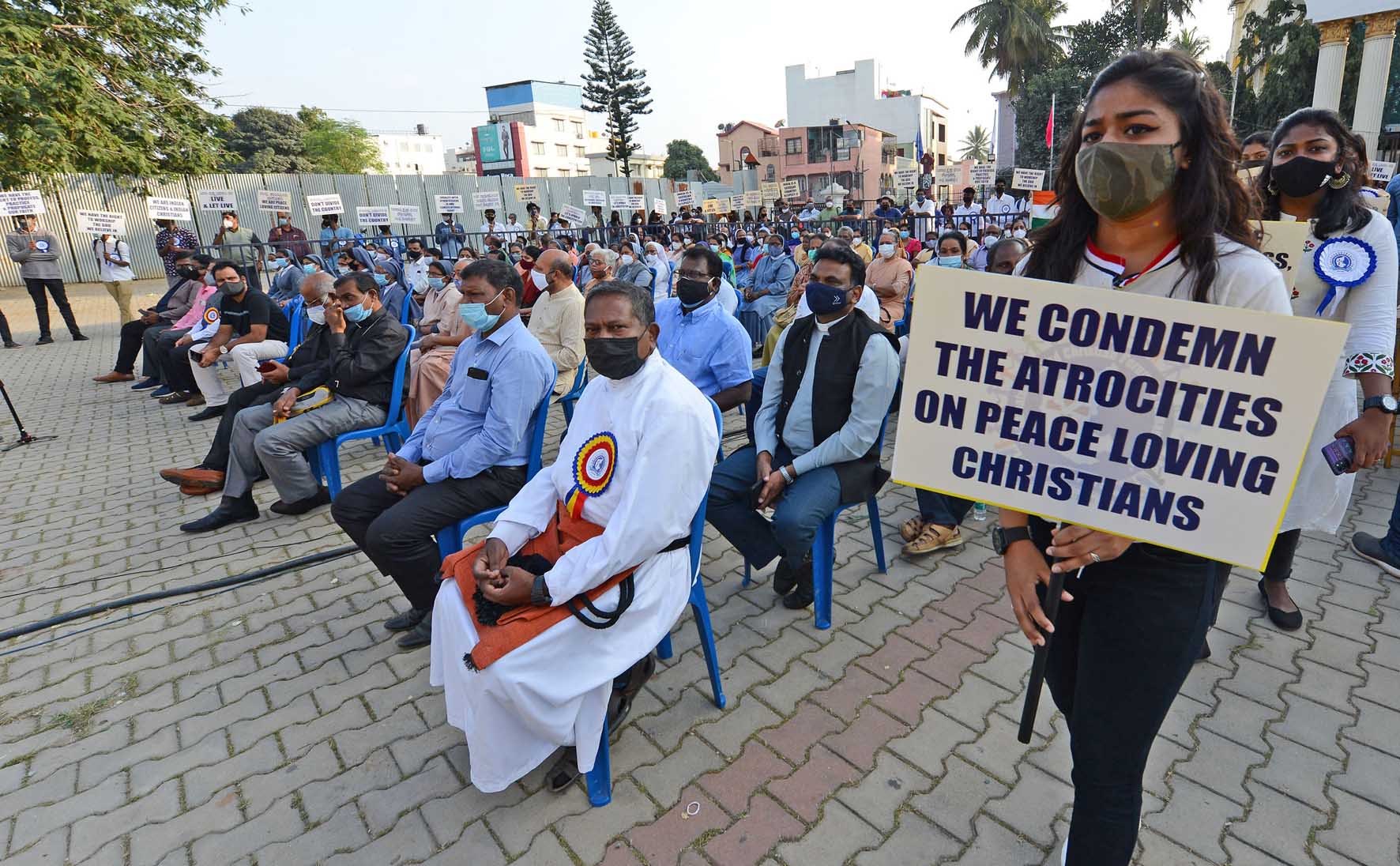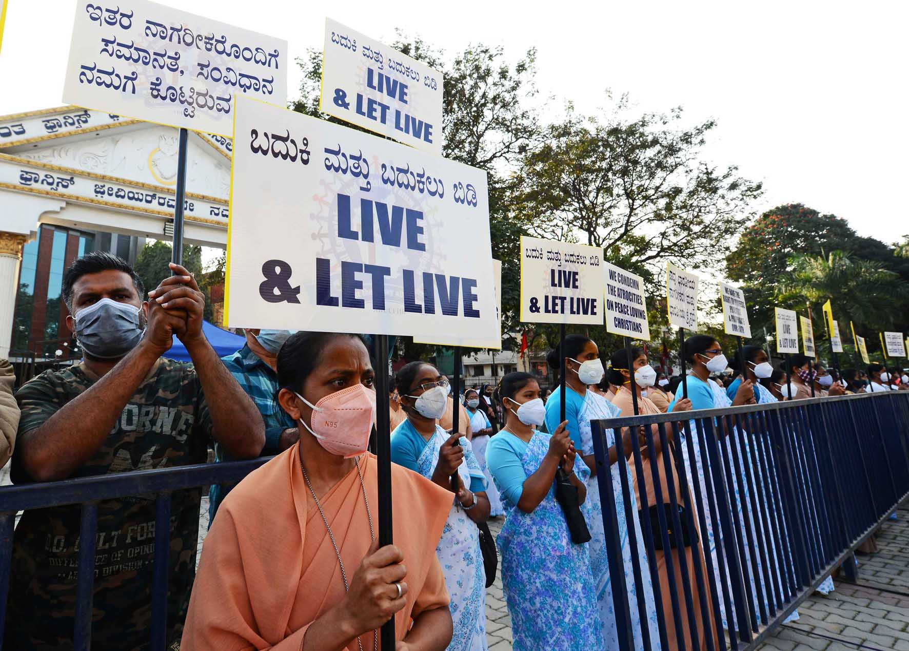 ಬೆಂಗಳೂರು, ಡಿ. 4: ‘ರಾಜ್ಯದಲ್ಲಿ ಬಿಜೆಪಿ ಸರಕಾರ ಅಲ್ಪಸಂಖ್ಯಾತರನ್ನು ಗುರಿಯನ್ನಾಗಿಸಿಕೊಂಡು ಉದ್ದೇಶಿಸಿರುವ ‘ಮತಾಂತರ ನಿಷೇಧ ಕಾಯ್ದೆ'ಯನ್ನು ಯಾವುದೇ ಕಾರಣಕ್ಕೂ ಜಾರಿಗೆ ತರಬಾರದು' ಎಂದು ಒತ್ತಾಯಿಸಿ ಬೆಂಗಳೂರಿನ ಆರ್ಚ್ ಬಿಷಪ್ ಡಾ.ಪೀಟರ್ ಮಚಾದೊ ನೇತೃತ್ವದಲ್ಲಿ ಕ್ರೈಸ್ತ ಸಮುದಾಯದ ಬೃಹತ್ ಸಮಾವೇಶನವನ್ನು ನಡೆಸಲಾಯಿತು.