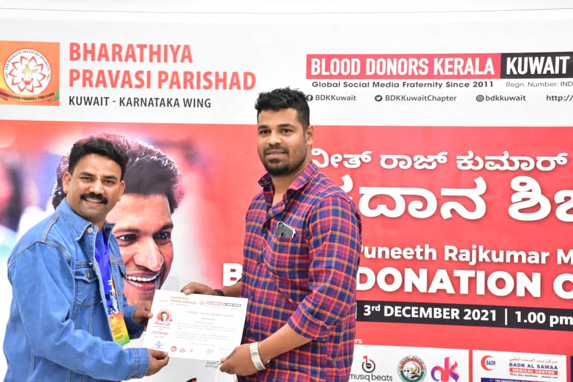 ಕುವೈತ್ ಸಿಟಿ: ಕನ್ನಡ ನಟ ಹಾಗೂ ಸಮಾಜ ಸೇವಕ ಪುನೀತ್ ರಾಜ್ ಕುಮಾರ್ ಅವರ ಜೀವನ ಮತ್ತು ಕಾರ್ಯಗಳನ್ನು ಸ್ಮರಿಸಿ ಗೌರವಿಸುವ ಸಲುವಾಗಿ ಕುವೈತ್ ನ ಭಾರತೀಯ ಪ್ರವಾಸಿ ಪರಿಷತ್ (ಬಿಪಿಪಿ) ಕರ್ನಾಟಕ ವಿಭಾಗ ಮತ್ತು 'ಬಿಡಿಕೆ ಕುವೈತ್' ಜಂಟಿಯಾಗಿ ರಕ್ತದಾನ ಶಿಬಿರವನ್ನು ಆದಾನ್ ಕೊಅಪರೇಟಿವ್ ಬ್ಲಡ್ ಟ್ರಾನ್ಸ್ಫ್ಯೂಸನ್ ಸೆಂಟರ್ನಲ್ಲಿ ಇತ್ತೀಚೆಗೆ ಆಯೋಜಿಸಿತ್ತು.