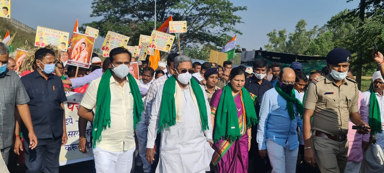 ಸೋಮವಾರ ಖಾನಾಪುರದಿಂದ ಬೆಳಗಾವಿಯ ಸುವರ್ಣಸೌಧದವರೆಗೂ ನಡೆದ ಪಾದಯಾತ್ರೆಯಲ್ಲಿ ವಿಧಾನಸಭೆಯ ವಿರೋಧ ಪಕ್ಷದ ನಾಯಕ ಸಿದ್ದರಾಮಯ್ಯ ಸೇರಿದಂತೆ ಪ್ರಮುಖರು ಪಾಲ್ಗೊಂಡಿದ್ದರು.