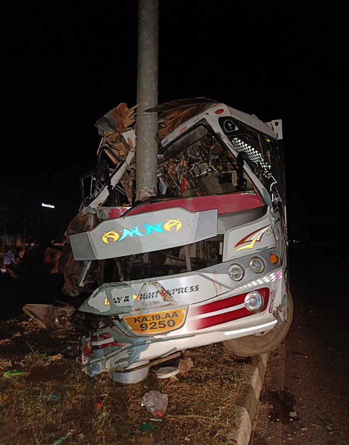 ಅಪಘಾತದ ತೀವ್ರತೆಗೆ ಲಾರಿ ಸಂಪೂರ್ಣ ನಜ್ಜುಗುಜ್ಜಾಗಿದೆ. ಸೂಚನಾ ಫಲಕದ ಕಂಬವೂ ಜಖಂಗೊಂಡಿದೆ.