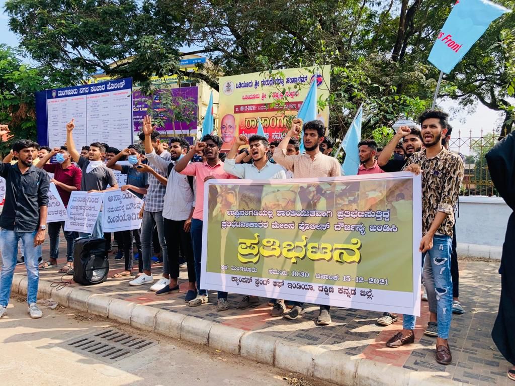 ಉಪ್ಪಿನಂಗಡಿ ಪೊಲೀಸ್ ಲಾಠಿಚಾರ್ಜ್ ಖಂಡಿಸಿ ಮಂಗಳೂರಿನಲ್ಲಿ ಕ್ಯಾಂಪಸ್ ಫ್ರಂಟ್ ಪ್ರತಿಭಟನೆ