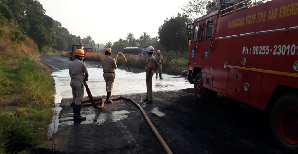 ಲಾರಿ ಪಲ್ಟಿಯಾಗಿದ್ದರಿಂದ ಲಾರಿಯ ಡಿಸೇಲ್ ಟ್ಯಾಂಕ್ ಹಾನಿಯಾಗಿದ್ದು ರಸ್ತೆಯಲ್ಲಿ ಹರಿದಿದೆ. ಇದರಿಂದ ವಾಹನಗಳ ಅಪಘಾತವಾಗುವ ಸಾಧ್ಯತೆಗಳು ಹೆಚ್ಚು ಇದೆ ಎಂದು ಮನಗಂಡ ಎಸ್.ಐ.ರಾಜೇಶ್ ಅವರು ಅಗ್ನಿಶಾಮಕ ದಳದವರನ್ನು ಕರೆಸಿ ನೀರು ಹಾಯಿಸಿ ರಸ್ತೆಯಲ್ಲಿ ಹರಿದ್ದಿದ್ದ ಡಿಸೇಲ್ ಸ್ವಚ್ಛ ಮಾಡಿಸಿದರು.