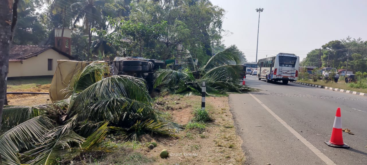 ಕೋಟ : ಕುಂದಾಪುರದ ಕಡೆಯಿಂದ ಮಂಗಳೂರಿಗೆ ಸಾಗುತ್ತಿದ್ದ ಲಾರಿಯೊಂದು ಕೋಟ ಮೂರುಕೈ ಬಳಿ ಚಾಲಕನ ನಿಯಂತ್ರಣ ತಪ್ಪಿ ಪಲ್ಟಿಯಾದ ಘಟನೆ ಶುಕ್ರವಾರ ಬೆಳಗ್ಗೆ ನಡೆದಿದೆ.