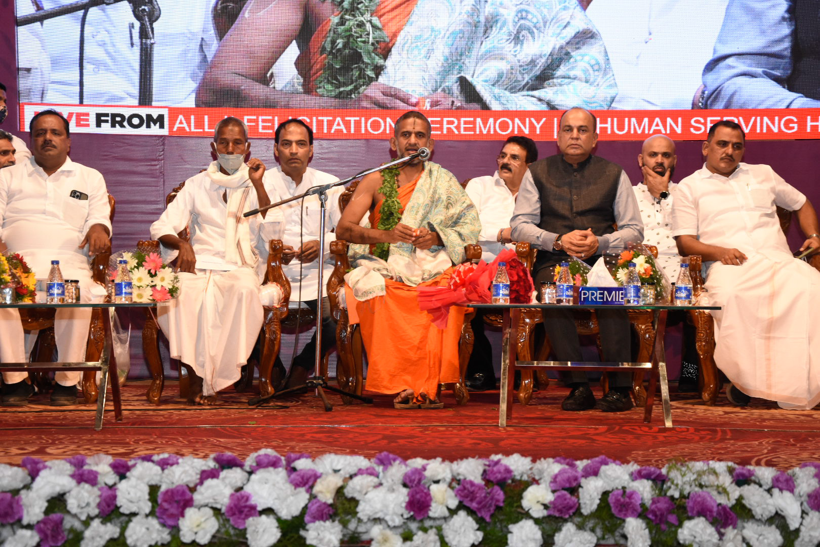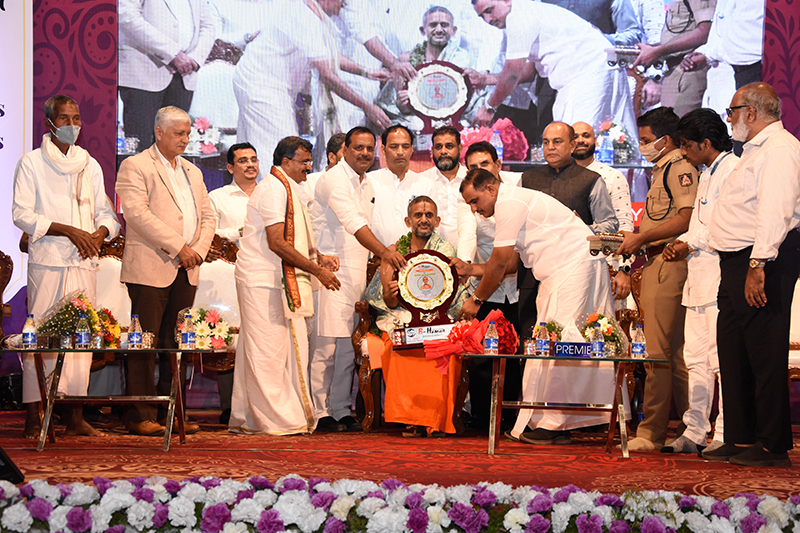 ಮಂಗಳೂರು, ಡಿ.17: ಪದ್ಮವಿಭೂಷಣ (ಮರಣೋತ್ತರ) ಪುರಸ್ಕೃತ ಪೇಜಾವರ ಮಠದ ವಿಶ್ವೇಶತೀರ್ಥ ಸ್ವಾಮೀಜಿ ಹಾಗೂ ಪದ್ಮಶ್ರೀ ಪುರಸ್ಕೃತ ಹರೇಕಳ ಹಾಜಬ್ಬ ಅವರನ್ನು ಮಂಗಳೂರಿನ 'ಬಿ ಹ್ಯೂಮನ್' ಸಂಸ್ಥೆಯ ವತಿಯಿಂದ ಶುಕ್ರವಾರ ನಗರದ ಪುರಭವನದಲ್ಲಿ ಸನ್ಮಾನಿಸಲಾಯಿತು.