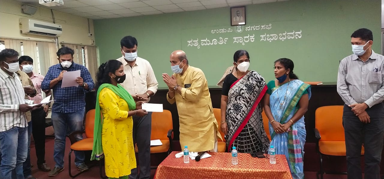 ಉಡುಪಿ ನಗರಸಭೆಯ ಸತ್ಯಮೂರ್ತಿ ಸ್ಮಾರಕ ಸಭಾಭವನದಲ್ಲಿ ಶಾಸಕ ರಘುಪತಿ ಭಟ್ ಅವರು ಈ ಚೆಕ್ಗಳನ್ನು ವಿತರಿಸಿದರು. ಉಡುಪಿ ವಿಧಾನಸಭಾ ಕ್ಷೇತ್ರ ವ್ಯಾಪ್ತಿಯಲ್ಲಿ ಒಟ್ಟು 26 ಕುಟುಂಬಗಳಿಗೆ ತಲಾ ಒಂದು ಲಕ್ಷ ರೂ.ನಂತೆ ಒಟ್ಟು 26 ಲಕ್ಷ ರೂ. ಮೊತ್ತದ ಚೆಕ್ಗಳನ್ನು ಸಂತ್ರಸ್ಥ ಕುಟುಂಬಗಳಿಗೆ ವಿತರಿಸಲಾಯಿತು.