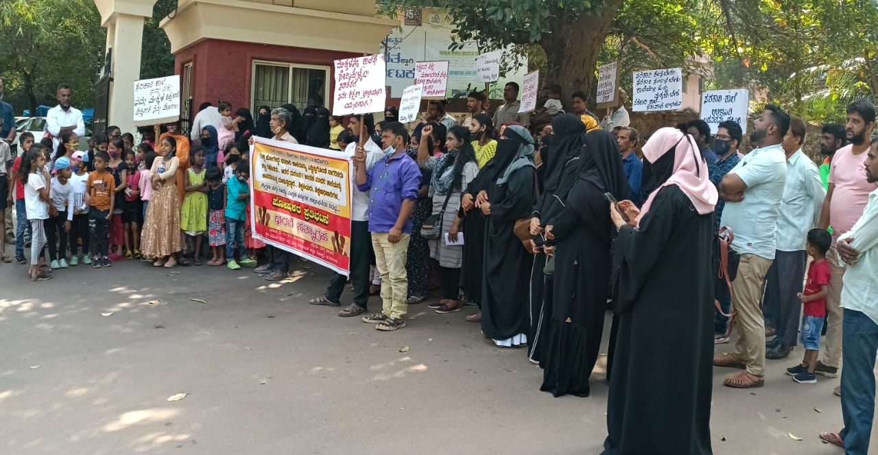 ಮಂಗಳೂರು, ಡಿ.21: ನಗರದ ಪಂಜಿಮೊಗರಿನ ದ.ಕ.ಜಿ.ಪಂ. ಮಾದರಿ ಹಿ.ಪ್ರಾ. ಶಾಲೆಯಲ್ಲಿ ಮುಖ್ಯ ಶಿಕ್ಷಕಿ ಮತ್ತು ಸಹ ಶಿಕ್ಷಕಿಯರಿಂದ ನಡೆಯುತ್ತಿರುವ ಶಾಲಾ ವಿರೋಧಿ, ಶಿಕ್ಷಣ ರೋಧಿ ಕೃತ್ಯಗಳ ವಿರುದ್ಧ ಮಕ್ಕಳ ಪೋಷಕರು ಮಂಗಳವಾರ ದಕ.ಜಿಪಂ ಕಚೇರಿಯ ಮುಂದೆ ಪ್ರತಿಭಟನೆ ನಡೆಯಿತು.