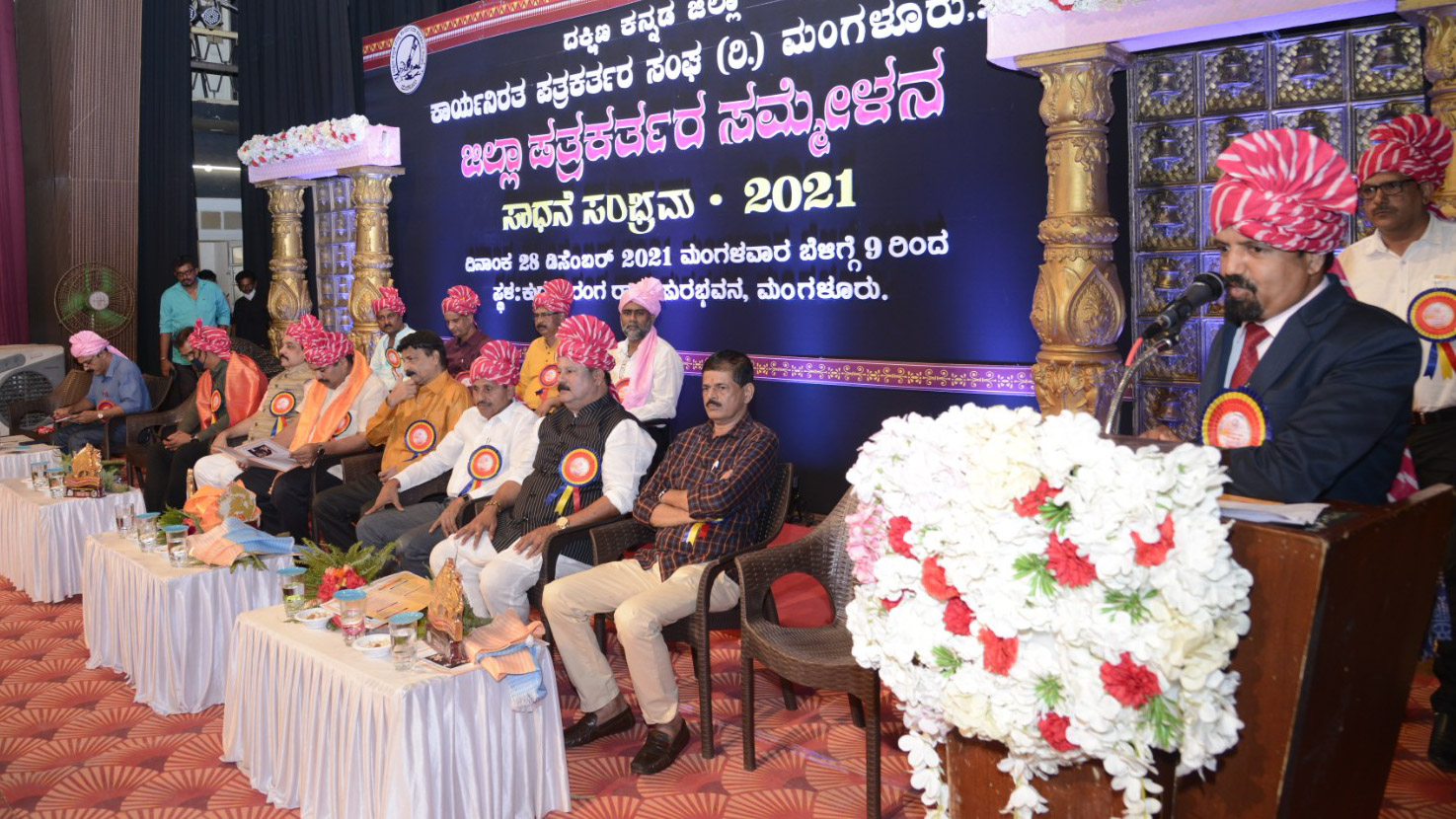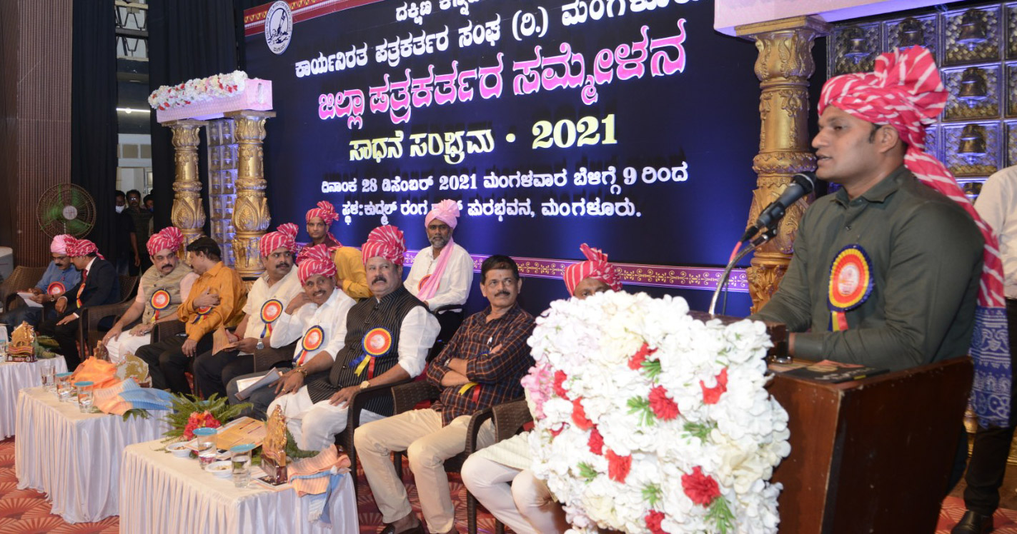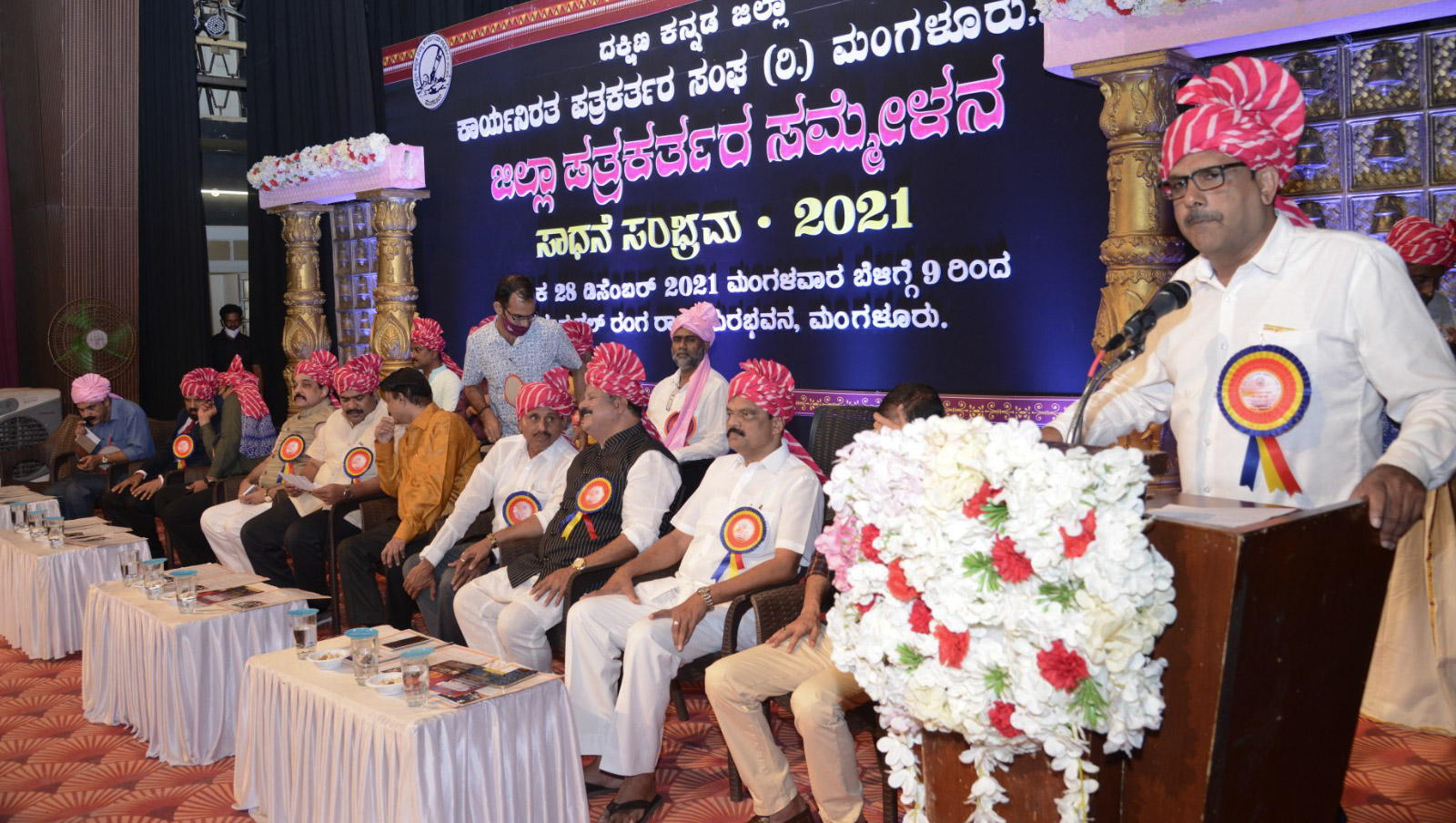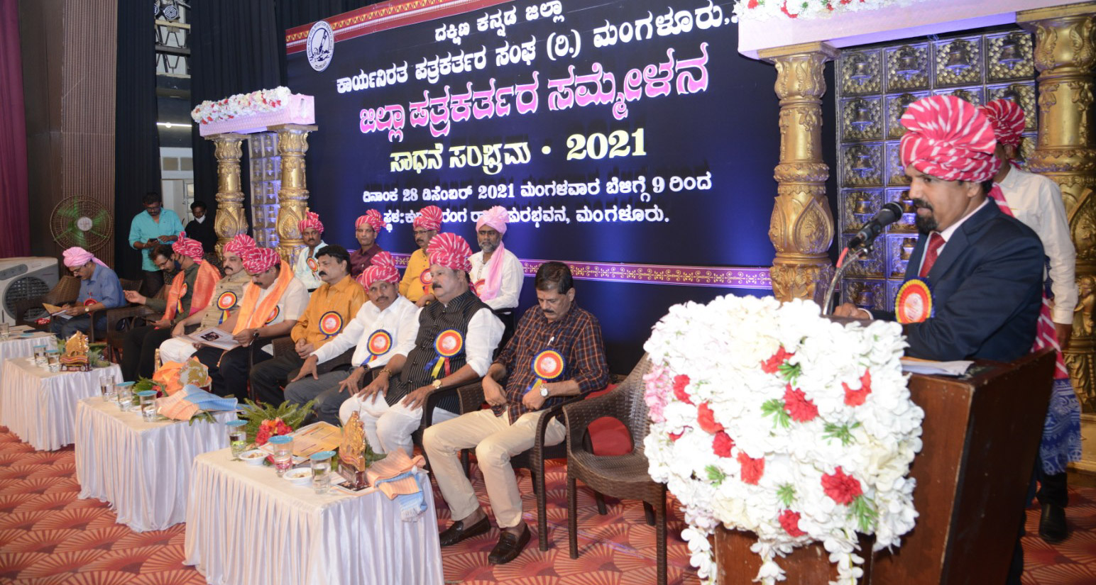 ದ.ಕ. ಜಿಲ್ಲಾ ಕಾರ್ಯನಿರತ ಪತ್ರಕರ್ತರ ಸಂಘದ ನೇತೃತ್ವದಲ್ಲಿ ಮಂಗಳೂರಿನ ಕುದ್ಮುಲ್ ರಂಗರಾವ್ ಪುರಭವನದಲ್ಲಿ ನಡೆದ ಜಿಲ್ಲಾ ಪತ್ರಕರ್ತರ ಸಮ್ಮೇಳನ 'ಸಾಧನೆ ಸಂಭ್ರಮ-2021'ನ್ನು ಉದ್ಘಾಟಿಸಿ ಅವರು ಮಾತನಾಡಿದರು. ದ.ಕ.ಜಿಲ್ಲಾ ಕಾರ್ಯನಿರತ ಪತ್ರಕರ್ತರ ಸಂಘ ಮಾದರಿಯಾಗಿ ಕೆಲಸ ಮಾಡುತಿದೆ. ಪತ್ರಕರ್ತರ ಸಂಘದ ಗ್ರಾಮ ವಾಸ್ತವ್ಯ ಕಾರ್ಯಕ್ರಮ ಹಲವು ಮಂದಿ ಜನ ಪ್ರತಿನಿಧಿಗಳಿಗೆ, ಸರಕಾರಕ್ಕೆ ಪ್ರೇರಣೆಯಾಗಿದೆ. ಬ್ರಾಂಡ್ ಮಂಗಳೂರು ಎಂಬ ಆಶಯದೊಂದಿಗೆ ಅಪೂರ್ವ ಮಾದರಿಯನ್ನು ನೀಡಿದೆ ಎಂದು ಹೇಳಿದರು. ಕೊರೋನ ಸಂದರ್ಭದಲ್ಲಿ ಜೀವದ ಹಂಗು ತೊರೆದು ಪತ್ರಕರ್ತರು ಅಭೂತಪೂರ್ವವಾಗಿ ಕಾರ್ಯನಿರ್ವಹಿಸಿದ್ದಾರೆ ಎಂದು ಅವರು ಹೇಳಿದರು. ಕಾರ್ಮಿಕ ಇಲಾಖೆ ನೀಡುವ ಕಿಟ್ ವಿತರಣೆಯನ್ನು ಅವರು ನೆರವೇರಿಸಿದರು.