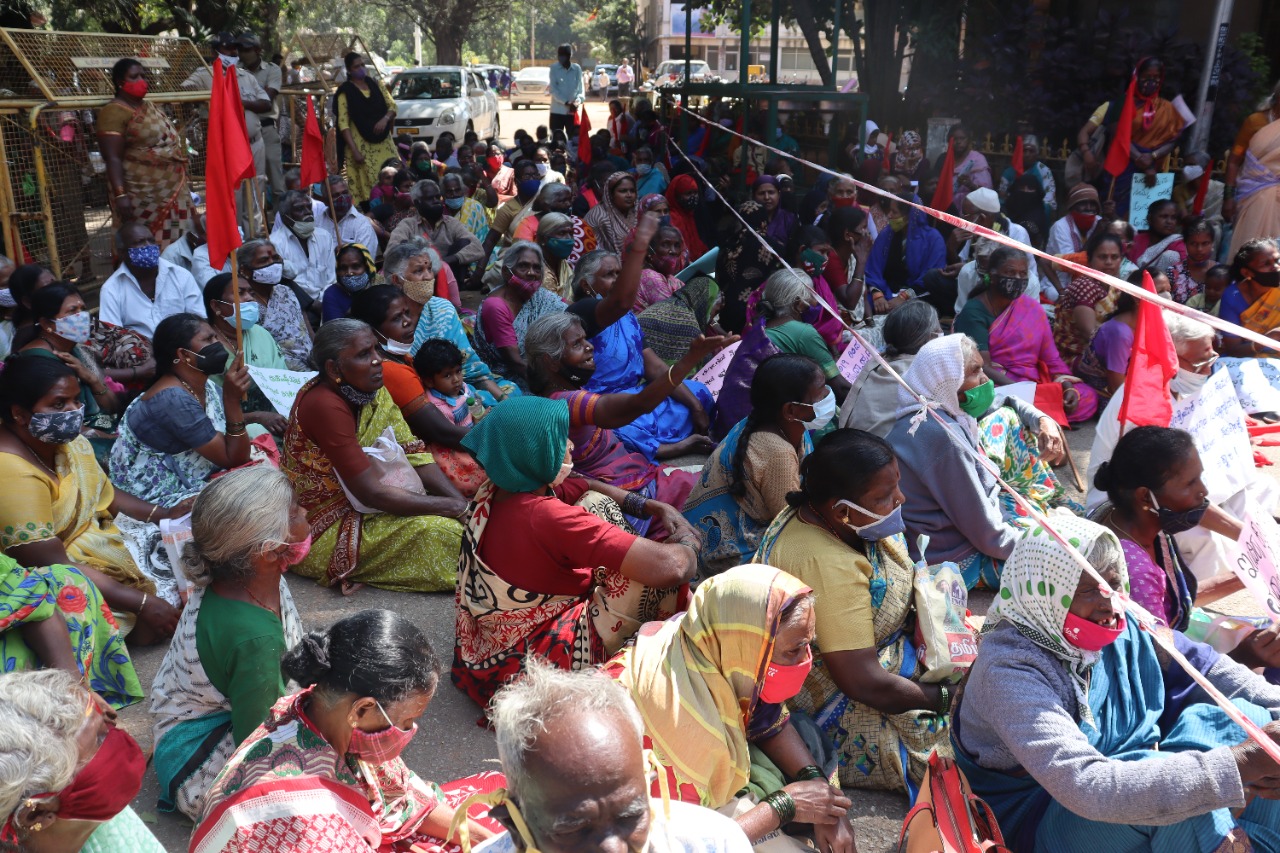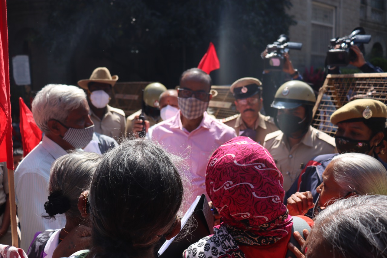 ನಿವೃತ್ತ ಅಸಂಘಟಿಕ ಕಾರ್ಮಿಕರಿಗೆ ಮಧ್ಯಾಹ್ನದ ಬಿಸಿಯೂಟ ಪುನರಾರಂಭಿಸುವಂತೆ ಒತ್ತಾಯಿಸಿ ಬಿಬಿಎಂಪಿ ಆವರಣದಲ್ಲಿ ಪ್ರತಿಭಟನೆ
