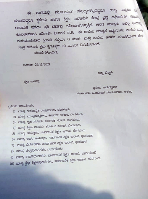 ಈ ಶಾಲೆಯಲ್ಲಿ 400 ವಿದ್ಯಾರ್ಥಿಗಳು ಓದುತ್ತಿದ್ದು, ಮುಂದಿನ ಆದೇಶದವರೆಗೆ ಶಾಲೆ ಮುಚ್ಚುವಂತೆ ಬಿಇಒ ಅವರು ಸೂಚನೆ ನೀಡಿದ್ದರಿಂದ ಡಿ.27ರಿಂದ ಶಾಲೆಯನ್ನು ಮುಚ್ಚಲಾಗಿದೆ ಎಂದು ತಿಳಿದುಬಂದಿದೆ.