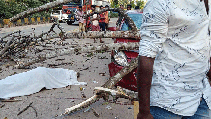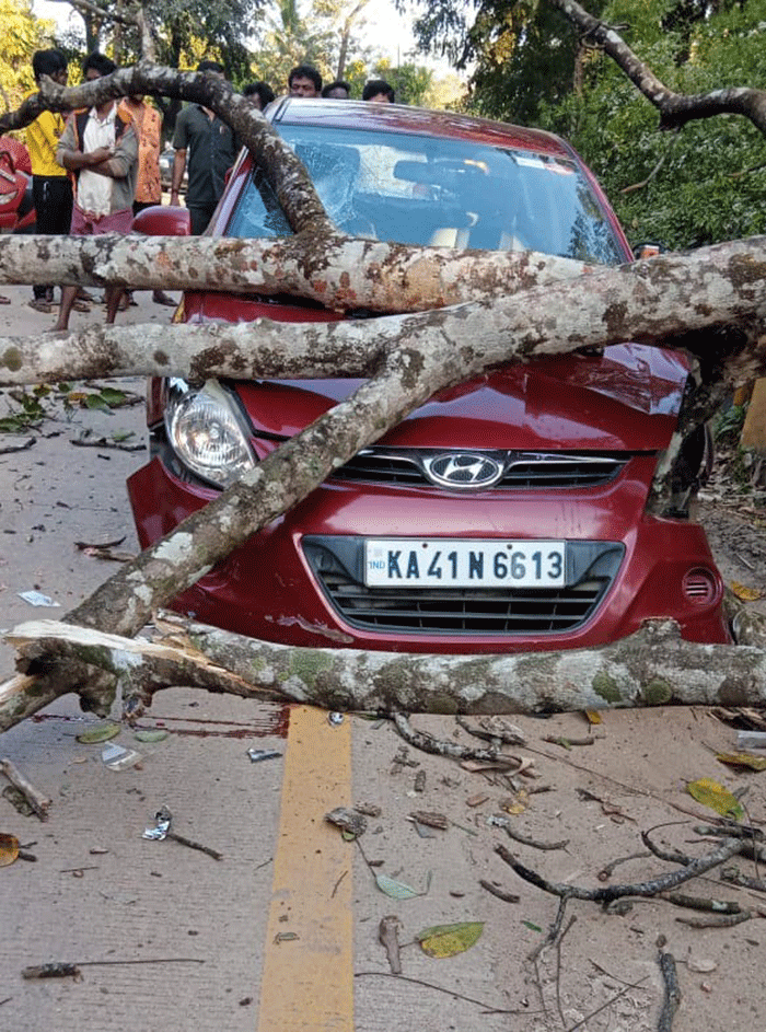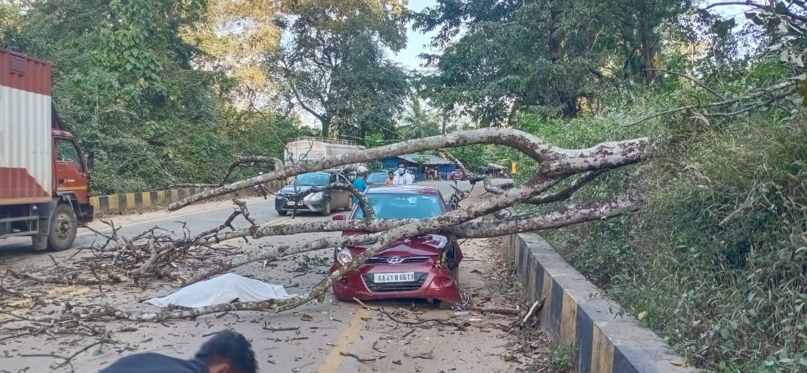 ಅಡ್ಡಹೊಳೆ: ನಿಲ್ಲಿಸಿದ್ದ ಕಾರಿನ ಮೇಲೆ ಬಿದ್ದ ಮರ: ಚಾಲಕ ಸ್ಥಳದಲ್ಲೇ ಮೃತ್ಯು