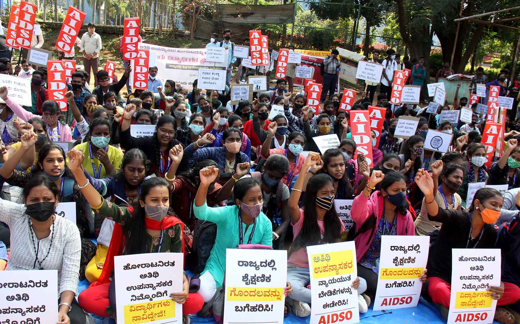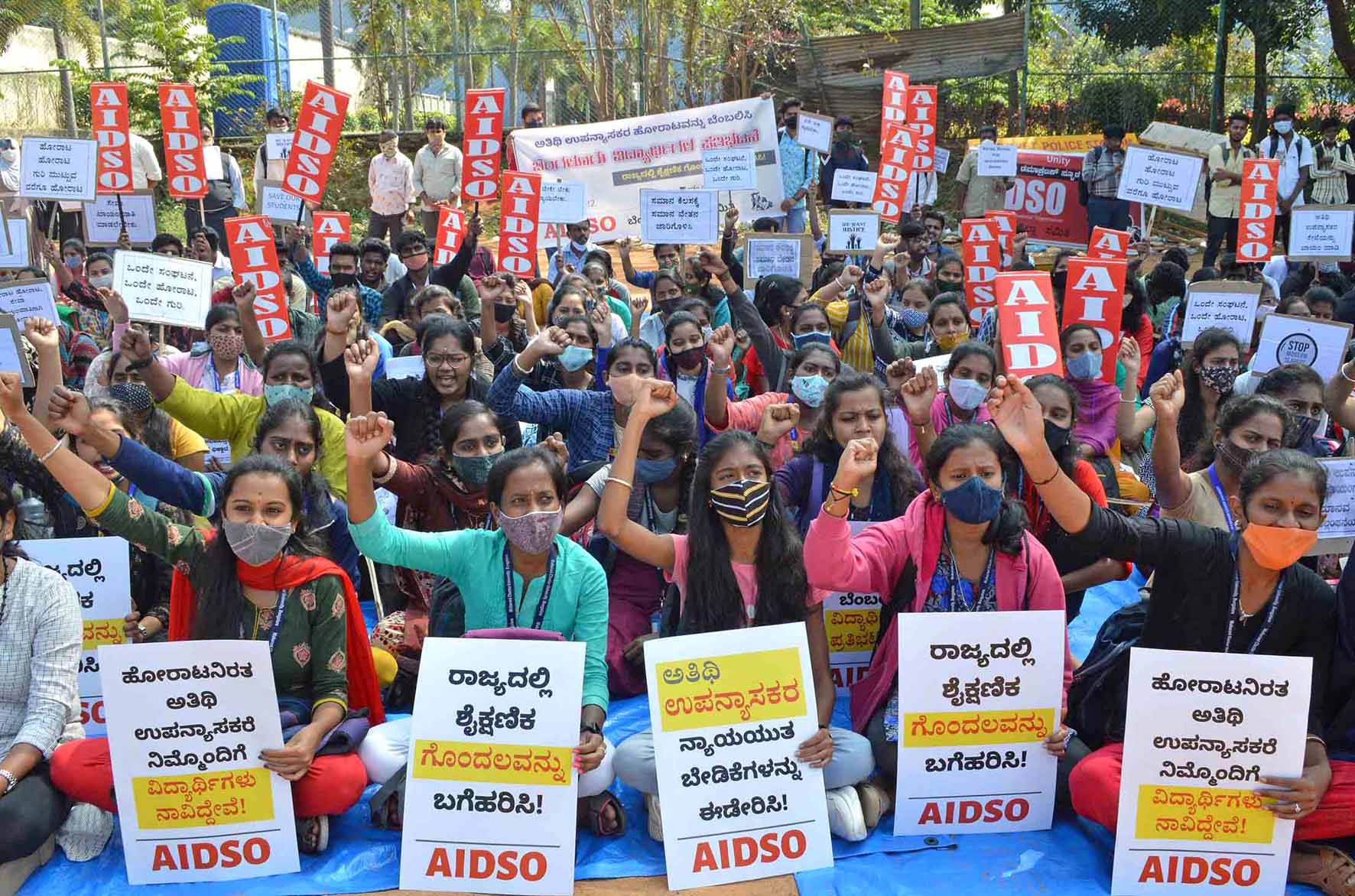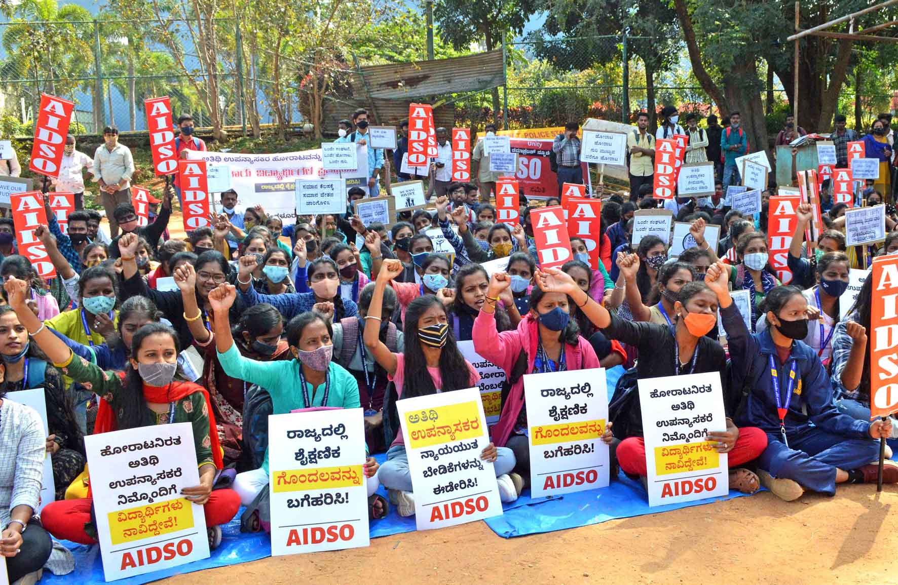 ಅತಿಥಿ ಉಪನ್ಯಾಸಕರ ಹೋರಾಟಕ್ಕೆ ವಿದ್ಯಾರ್ಥಿಗಳ ಬೆಂಬಲ: ಬೇಡಿಕೆಗಳನ್ನು ಈಡೇರಿಸುವಂತೆ ಎಐಡಿಎಸ್ಓ ಆಗ್ರಹ