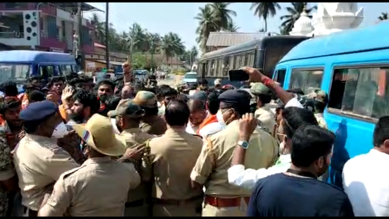 ಈ ಸಂದರ್ಭದಲ್ಲಿ ಪೊಲೀಸರು ಬಜರಂಗದಳ ಕಾರ್ಯಕರ್ತರು, ಮುಖಂಡರನ್ನು ವಶಕ್ಕೆ ಪಡೆಯಲು ಮುಂದಾದಾರು. ಈ ವೇಳೆ ಪೊಲೀಸರು ಹಾಗೂ ಮುಖಂಡರ ನಡುವೆ ತಳ್ಳಾಟ, ನೂಕಾಟ ನಡೆದು ತೀವ್ರ ಮಾತಿನ ಚಕಮಕಿ, ವಾಗ್ವಾದ ನಡೆಯಿತು. ಈ ಘಟನೆಯಿಂದ ಕೆಲ ಹೊತ್ತು ಸ್ಥಳದಲ್ಲಿ ಬಿಗುವಿನ ವಾತಾವರಣವೂ ನಿರ್ಮಾಣವಾಗಿತ್ತು. ಪರಿಸ್ಥಿತಿ ಕೈಮೀರುವ ಮುನ್ನ ಪೊಲೀಸರು ಕರಗುಂದ ಚಲೋ ಚಳವಳಿಗೆ ಮುಂದಾಗಿದ್ದ ಎಲ್ಲ ಮುಖಂಡರನ್ನು ವಶಕ್ಕೆ ಪಡೆದು ಪ್ರತಿಭಟನಾಕಾರರನ್ನು ಚದುರಿಸಿದರು. ಇದರಿಂದ ಪರಿಸ್ಥಿತಿ ನಿಯಂತ್ರಣಕ್ಕೆ ಬಂದಿದೆ ಎಂದು ತಿಳಿದು ಬಂದಿದೆ.
