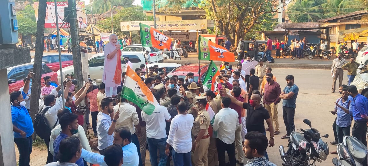 ಮಂಗಳೂರು; ಪ್ರಧಾನಿ ಮೋದಿ ಪಂಜಾಬ್ ಭೇಟಿ ವೇಳೆ ಭದ್ರತಾ ವೈಫಲ್ಯ; ಕಾಂಗ್ರೆಸ್ ಕಚೇರಿ ಎದುರು ಬಿಜೆಪಿ ಪ್ರತಿಭಟನೆ
