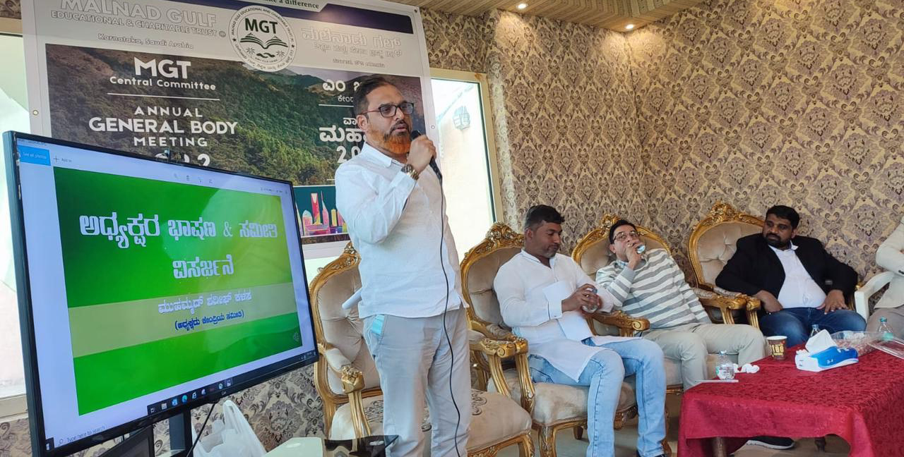 ರಿಯಾದ್ : ಮಲೆನಾಡು ಗಲ್ಫ್ ಎಜುಕೇಶನ್ ಆ್ಯಂಡ್ ಚಾರಿಟೇಬಲ್ ಟ್ರಸ್ಟ್ ಇದರ ಕೇಂದ್ರ ಸಮಿತಿಯ ವಾರ್ಷಿಕ ಮಹಾಸಭೆಯು ಶುಕ್ರವಾರ ನಡೆಯಿತು. ಅಶ್ರಫ್ ಜೆವಿಸಿ, ಉಪ್ಪಳ್ಳಿ ಕಿರಾಅತ್ ಪಠಿಸಿಸಿದರು. ಉಪಾಧ್ಯಕ್ಷರಾದ ಸಿರಾಜ್ ಚಕ್ಕಮಕ್ಕಿ ಸ್ವಾಗತಿಸಿದರು.