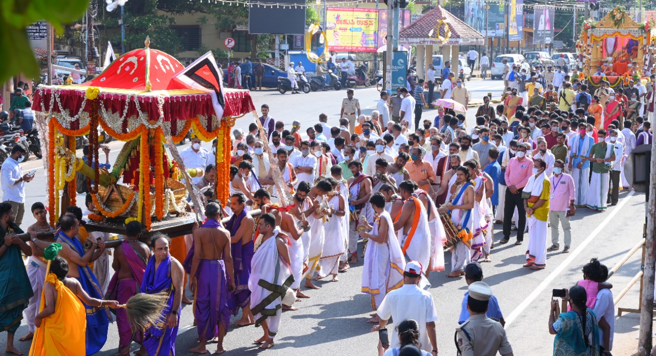 ಪುರಪ್ರವೇಶ: ಇದಕ್ಕೆ ಮೊದಲು ಕೃಷ್ಣಾಪುರ ಶ್ರೀಗಳು, ದೇಶದ ವಿವಿಧ ತೀರ್ಥಕ್ಷೇತ್ರಗಳನ್ನು ಸಂದರ್ಶಿಸಿ ಇಂದು ಜೋಡುಕಟ್ಟೆಯಿಂದ ಸಾಂಪ್ರದಾಯಿಕ ಮೆರವಣಿಗೆಯೊಂದಿಗೆ ಪುರಪ್ರವೇಶ ಮಾಡಿದರು. ಕನಕನ ಕಿಂಡಿಯಲ್ಲಿ ಕೃಷ್ಣನನ್ನು ಕಂಡು ನಮಿಸಿದ ಅವರು ಚಂದ್ರವೌಳೀಶ್ವರ ಹಾಗೂ ಅನಂತೇಶ್ವರನಿಗೆ ನಮವಿ, ಮಧ್ವಾಚಾರ್ಯರಿಗೆ ಪೂಜೆ ಸಲಿಸಿ ಕೃಷ್ಣ ಮಠ ಪ್ರವೇಶಿಸಿದರು.