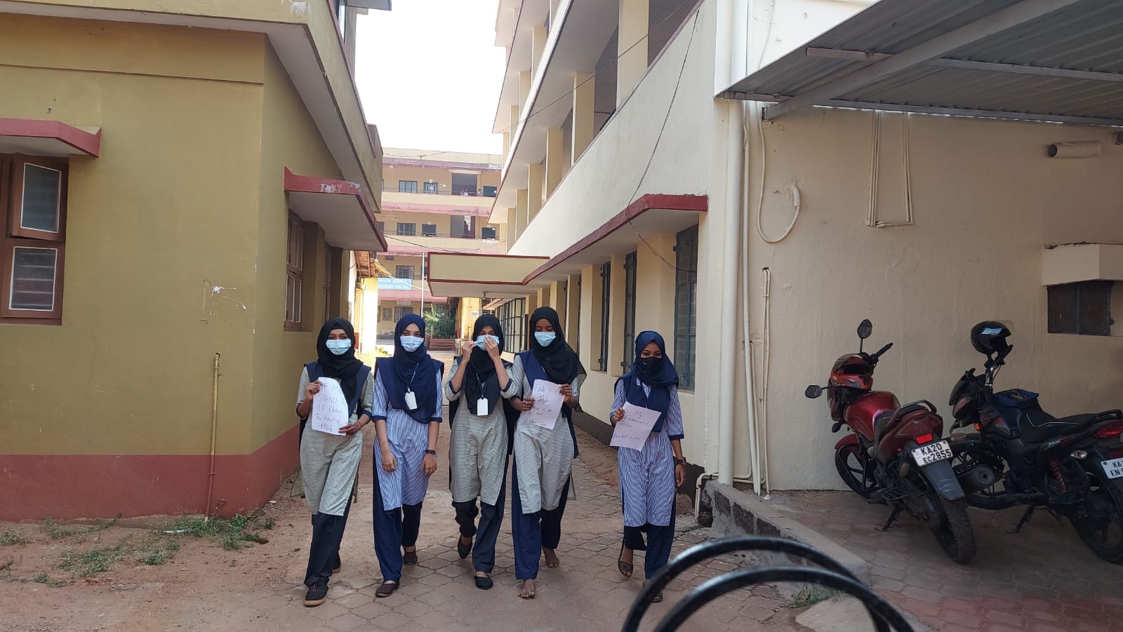 ಸ್ಕಾರ್ಫ್ ವಿವಾದ; ಉಡುಪಿ ಸರಕಾರಿ ಕಾಲೇಜಿನ ಆವರಣದಲ್ಲಿ ವಿದ್ಯಾರ್ಥಿನಿಯರಿಂದ ಭಿತ್ತಿಪತ್ರ ಪ್ರದರ್ಶನ