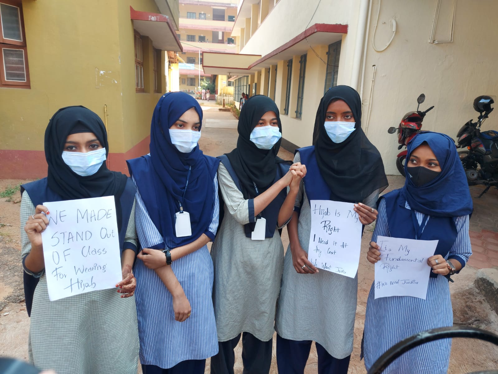 ‘ಹಿಜಾಬ್ ನನ್ನ ಹಕ್ಕು, ಅದನ್ನು ಪಡೆದೆ ತೀರುತ್ತೇವೆ, ನಮಗೆ ನ್ಯಾಯ ಬೇಕು’, ‘ಇದು ನನ್ನ ಮೂಲಭೂತ ಹಕ್ಕು’, ‘ನಾವು ಹಿಜಾಬ್ ಹಾಕಿದ ಕಾರಣಕ್ಕಾಗಿ ತರಗತಿಯಿಂದ ಹೊರಗೆ ಕುಳಿತುಕೊಂಡಿದ್ದೇವೆ’ ಎಂಬ ಬಿತ್ತಿ ಪತ್ರಗಳನ್ನು ಐವರು ವಿದ್ಯಾರ್ಥಿನಿಯರು ಪ್ರದರ್ಶಿಸಿದರು. ಇವರು ಇಂದು ಕೂಡ ಹಿಜಾಬ್ ಧರಿಸಿ ಕೊಂಡು ಕಾಲೇಜಿಗೆ ಬಂದ ಕಾರಣಕ್ಕೆ ತರಗತಿಗೆ ಪ್ರವೇಶ ಇಲ್ಲದೆ ಕಾಲೇಜಿನಿಂದ ಹೊರಗೆ ಉಳಿದಿದ್ದರು.