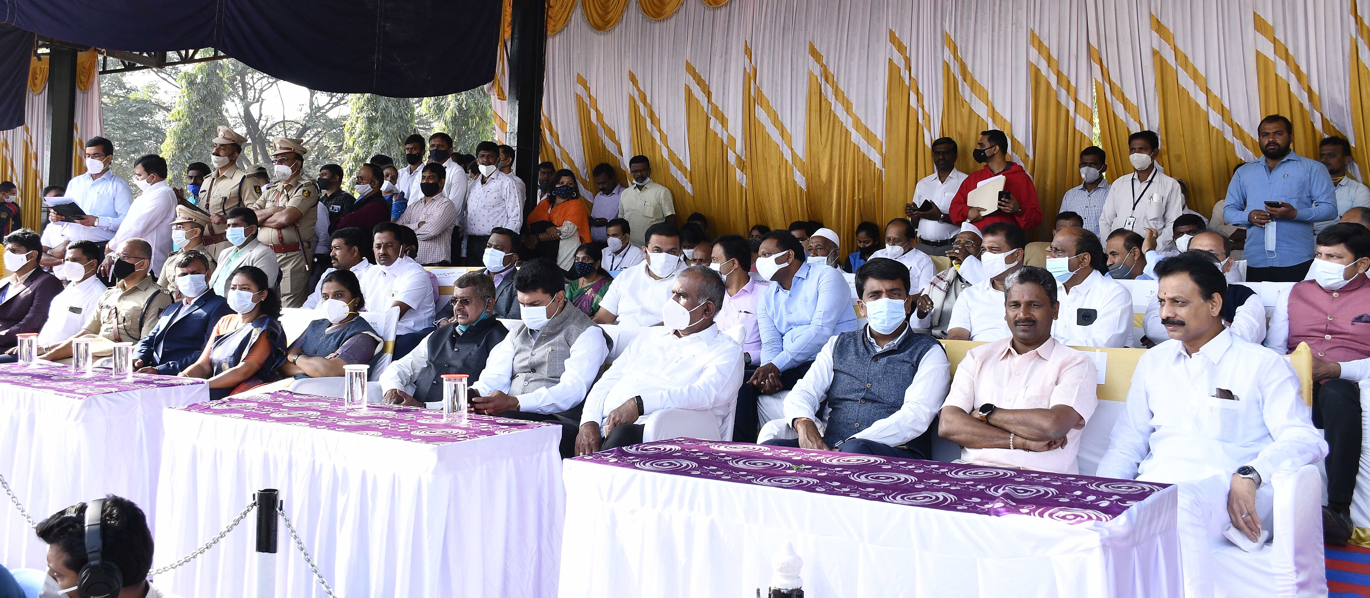 ಸಂವಿಧಾನ ರೂಪಿಸಿಕೊಟ್ಟ ಒಕ್ಕೂಟ ವ್ಯವಸ್ಥೆಯಲ್ಲಿ ಭಾರತದ ಸಾರ್ವಭೌಮತೆಗೆ ಧಕ್ಕೆ ತಾರದಂತೆ, ತನ್ನ ಅಸ್ಮಿತೆಯನ್ನೂ ಉಳಿಸಿಕೊಂಡು ಅಭಿವೃದ್ಧಿಯೆಡೆಗೆ ರಾಜ್ಯ ಸಾಗುತ್ತಿದೆ ಎಂದ ಅವರು, ಇಂದು ಇಡೀ ದೇಶದಲ್ಲಿ ಕೊರೊನಾ ಆತಂಕದ ನಡುವೆಯೇ ಗಣರಾಜ್ಯೋತ್ಸವವನ್ನು ವಿಜೃಂಭಣೆಯಿಂದ ಆಚರಿಸಲಾಗುತ್ತಿದೆ. ಕೊರೋನಾ ನಿರ್ವಹಣೆಗೆ ರಾಜ್ಯ ಸರ್ಕಾರ ಹಗಲಿರುಳು ಶ್ರಮಿಸುತ್ತಿದೆ. ಮೂರನೇ ಅಲೆ ಸಮರ್ಥವಾಗಿ ಎದುರಿಸಲು ಎಲ್ಲಾ ರೀತಿಯ ಮುಂಜಾಗ್ರತಾ ಕ್ರಮಗಳನ್ನು ಕೈಗೊಂಡಿದೆ ಎಂದು ಹೇಳಿದರು.
