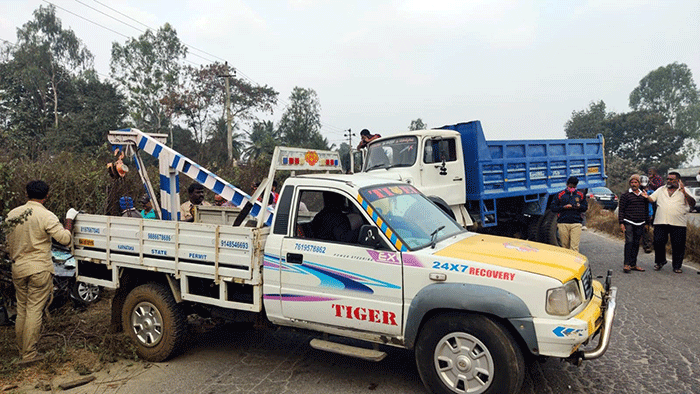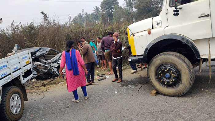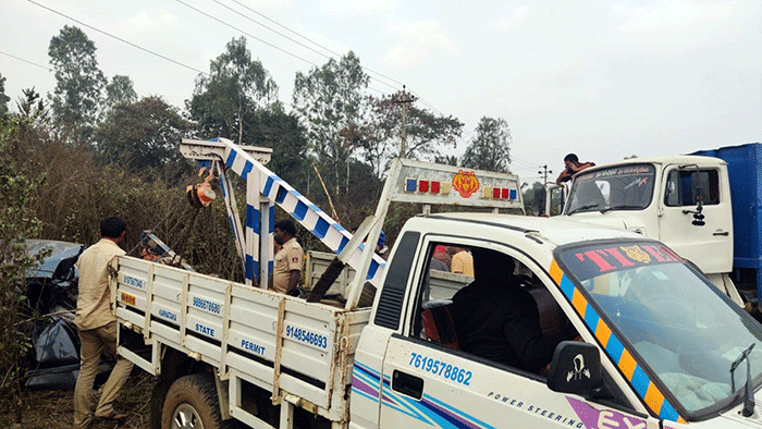 ಟಿಪ್ಪರ್ ಚಾಲಕನ ನಿಯಂತ್ರಣ ತಪ್ಪಿ ಕಾರಿಗೆ ಢಿಕ್ಕಿ ಹೊಡೆದು ಈ ಅಪಘಾತ ಸಂಭವಿಸಿದೆ ಎಂದು ತಿಳಿದುಬಂದಿದೆ.