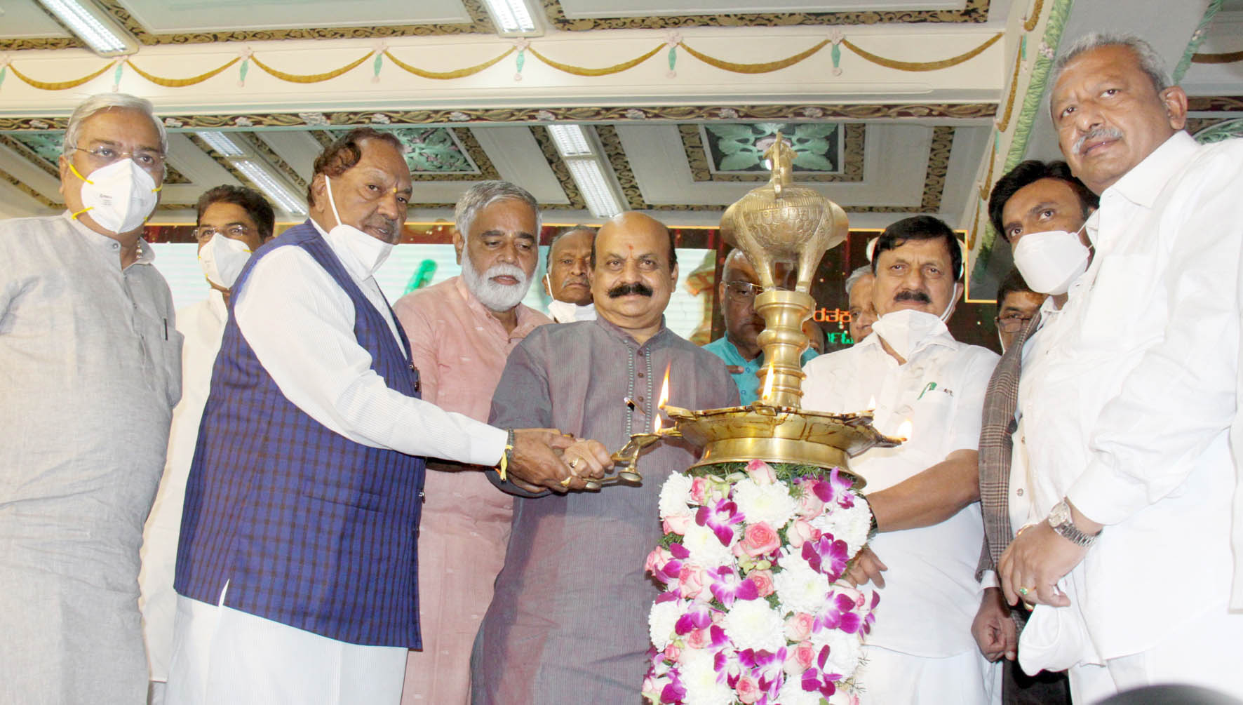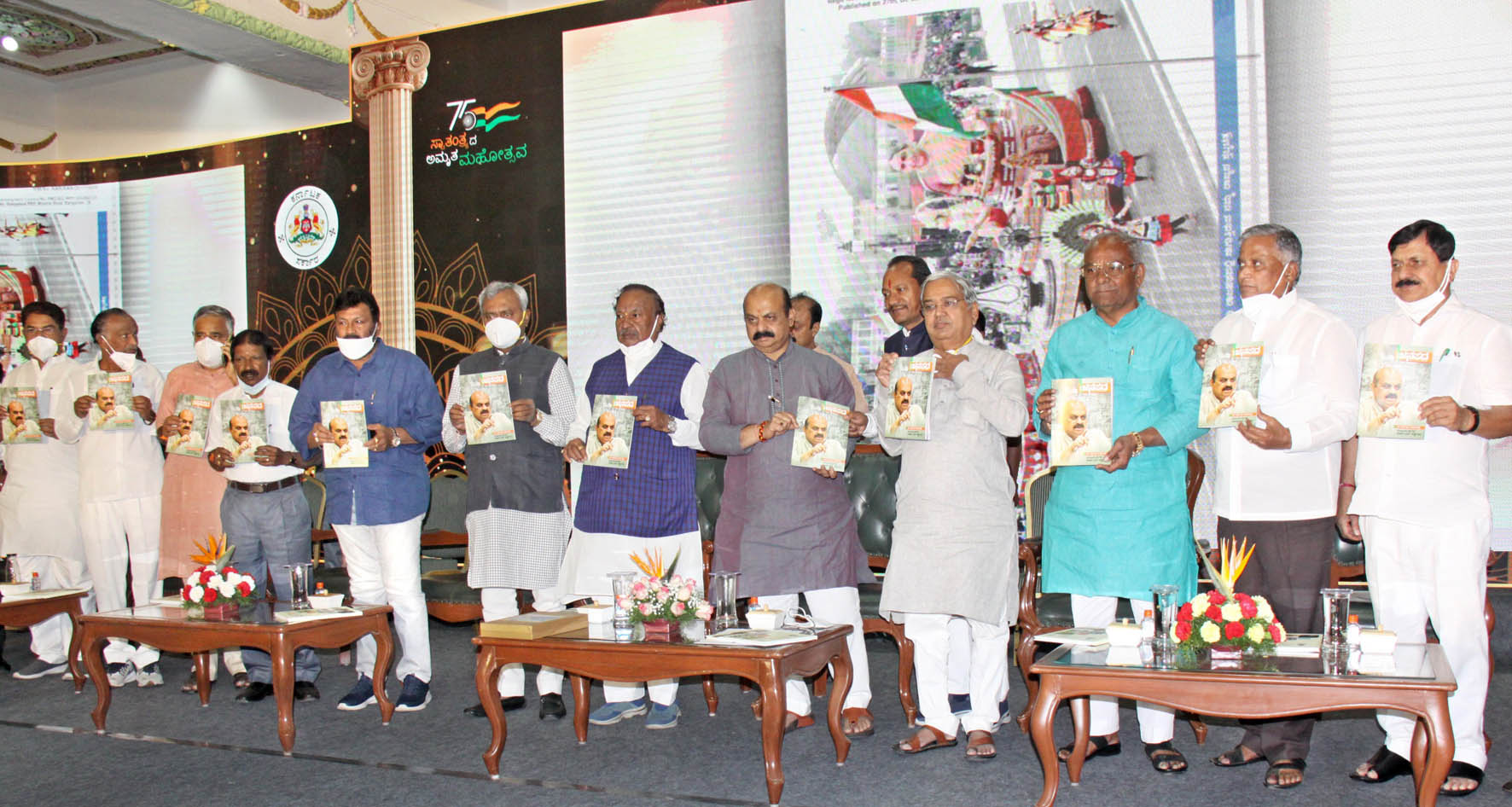 'ಮುಂಬರುವ ದಿನಗಳಲ್ಲಿ 'ಭವ್ಯ ಭವಿಷ್ಯ ಇರುವ ಕರ್ನಾಟಕ'ವನ್ನು ಕಟ್ಟುವ ತೀರ್ಮಾನ ಮಾಡಿದ್ದೇವೆ. ನವ ಭಾರತಕ್ಕಾಗಿ ನವ ಕರ್ನಾಟಕ ಎಂಬ ಧ್ಯೇಯವನ್ನಿಟ್ಟುಕೊಂಡು ಸರಕಾರ ಕೆಲಸ ಮಾಡುತ್ತಿದೆ. ಸಚಿವ ಸಂಪುಟದ ಸಹೋದ್ಯೋಗಿಗಳು, ಶಾಸಕ ಮಿತ್ರರು, ಪಕ್ಷದ ಎಲ್ಲ ವರಿಷ್ಠರು, ಪದಾಧಿಕಾರಿಗಳು, ಕಾರ್ಯಕರ್ತರು ಸಹಕಾರ ನೀಡಿದ್ದಾರೆ. ಎಲ್ಲರೂ ಕೋವಿಡ್ ಹಾಗೂ ಪ್ರವಾಹ ಸಂದರ್ಭದಲ್ಲಿ ಕರ್ನಾಟಕದ ಅಭಿವೃದ್ಧಿಯ ವಿಚಾರದಲ್ಲಿ ಸಂಪೂರ್ಣವಾದ ಸಹಕಾರವನ್ನು ಕೊಟ್ಟಿದ್ದಾರೆ' ಎಂದು ಅವರು ಸ್ಮರಿಸಿದರು.