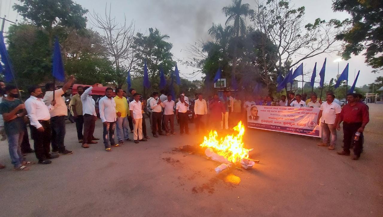 ಬಳಿಕ ಆಕ್ರೋಶಿತ ದಸಂಸ ಕಾರ್ಯಕರ್ತರು ಘೋಷಣೆಗಳನ್ನು ಕೂಗುತ್ತ ನ್ಯಾಯಾಧೀಶರ ಪ್ರತಿಕೃತಿಗೆ ಚಪ್ಪಲಿ ಏಟು ನೀಡಿದರು. ತದನಂತರ ಅವರ ಪ್ರತಿಕೃತಿಯನ್ನು ದಹಿಸಿ ಆಕ್ರೋಶ ವ್ಯಕ್ತಪಡಿಸಲಾಯಿತು.