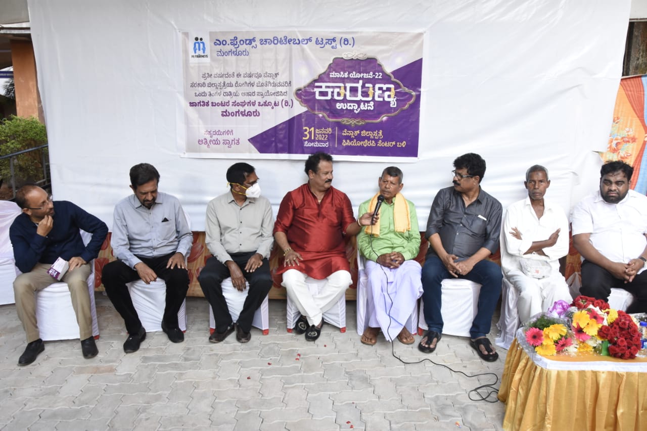 ವೆನ್ಲಾಕ್ ಫಿಸಿಯೋಥೆರಪಿ ಸೆಂಟರ್ ಬಳಿ ನಡೆದ ಕಾರ್ಯಕ್ರಮದಲ್ಲಿ ಪದ್ಮಶ್ರೀ ಪುರಸ್ಕೃತರಾದ ಹರೇಕಳ ಹಾಜಬ್ಬ ಮತ್ತು ಮಹಾಲಿಂಗ ನಾಯ್ಕ್, ರಾಜ್ಯೋತ್ಸವ ಪ್ರಶಸ್ತಿ ಪುರಸ್ಕೃತ ಐಕಳ ಹರೀಶ್ ಶೆಟ್ಟಿ ಅವರನ್ನು ಸನ್ಮಾನಿಸಲಾ ಯಿತು. ಪದ್ಮಶ್ರೀ ವಿಜೇತರಿಗೆ ಗೌರವಧನ ವಿತರಿಸಲಾಯಿತು. ವೆನ್ಲಾಕ್ ಆಸ್ಪತ್ರೆ ಆರ್ಎಂಒ ಡಾ. ಸುಧಾಕರ್, ಜಾಗತಿಕ ಬಂಟರ ಸಂಘಗಳ ಒಕ್ಕೂಟದ ಉಪಾಧ್ಯಕ್ಷ ಕರ್ನಿರೆ ವಿಶ್ವನಾಥ ಶೆಟ್ಟಿ, ಎಂ.ಫ್ರೆಂಡ್ಸ್ ಎನ್ನಾರೈ ಸದಸ್ಯ ಫಾರೂಕ್ ಜುಬೈಲ್ ಮುಖ್ಯ ಅತಿಥಿಯಾಗಿದ್ದರು.