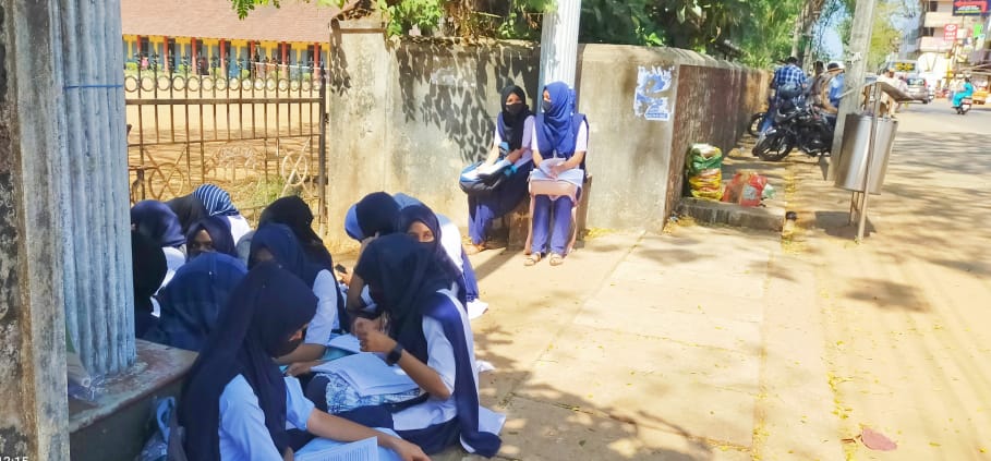 ಉಡುಪಿ : ಹಿಜಾಬ್ ಧರಿಸಿ ಬಂದ ಕುಂದಾಪುರ ಸರಕಾರಿ ಜೂನಿಯರ್ ಕಾಲೇಜಿನ ವಿದ್ಯಾರ್ಥಿನಿಯರೆಲ್ಲರೂ ಸತತ ಎರಡನೇ ದಿನವೂ ಕಾಲೇಜಿನ ಆವರಣದ ಹೊರಗೆ ರಸ್ತೆ ಬದಿಯಲ್ಲಿ ಕುಳಿತಿದ್ದಾರೆ.