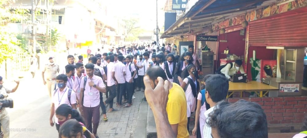 ಕುಂದಾಪುರದಲ್ಲಿ ಮುಂದುವರಿದ ಹಿಜಾಬ್ ಗೆ ವಿರೋಧ: ಖಾಸಗಿ ಕಾಲೇಜು ವಿದ್ಯಾರ್ಥಿಗಳಿಂದ ಮೆರವಣಿಗೆ